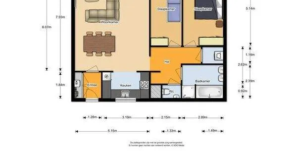 3 kamers appartement van 90 m2