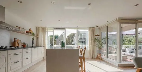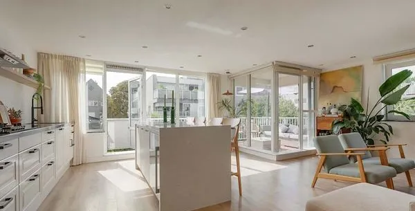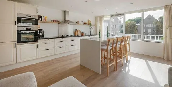 . Beschrijving. Dit goed ingericht, twee-slaapkamerappartement van 87 m² biedt een ideale mix van modern comfort en de charme van Amsterdam. Met een ruime open woonkamer die daglicht laat binnenstromen, is het perfect voor gezinnen en zakelijke reizigers. De keuken, volledig uitgerust met hoogwaardige apparatuur zoals een vaatwasser en dual ovens, heeft een praktisch kookeiland met een ontbijtbar. De zonnige b....