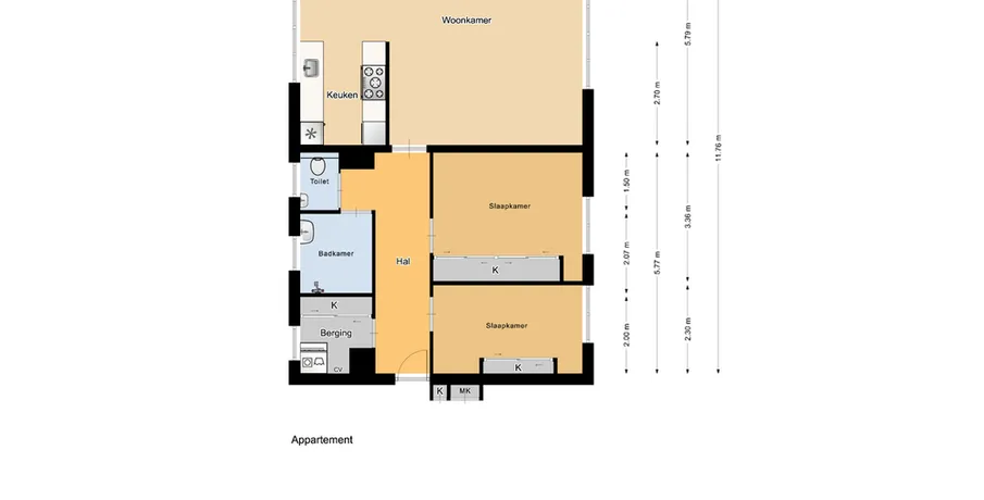 3 kamers appartement van 86 m2
