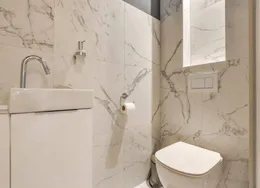 . Beschrijving. Amazing "Loft" apartment in very nice area. Located on the border of Jordaan in the centre of Amsterdam. Close to Oud West and the canals. Very stylish with brick wall and "state of art" furniture .Entrance into bright and spacious apartment. Front size has the view and living area. You can chill there easily next to the fire place.Kitchen and dining area in the middle. Luxu....