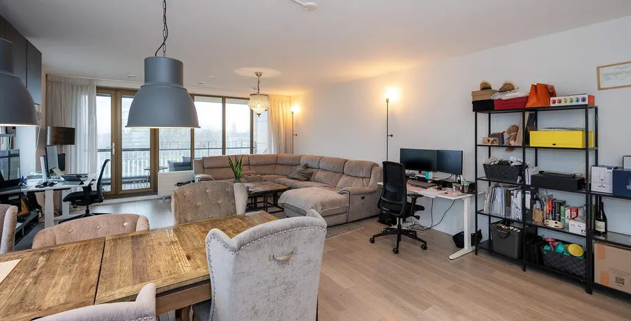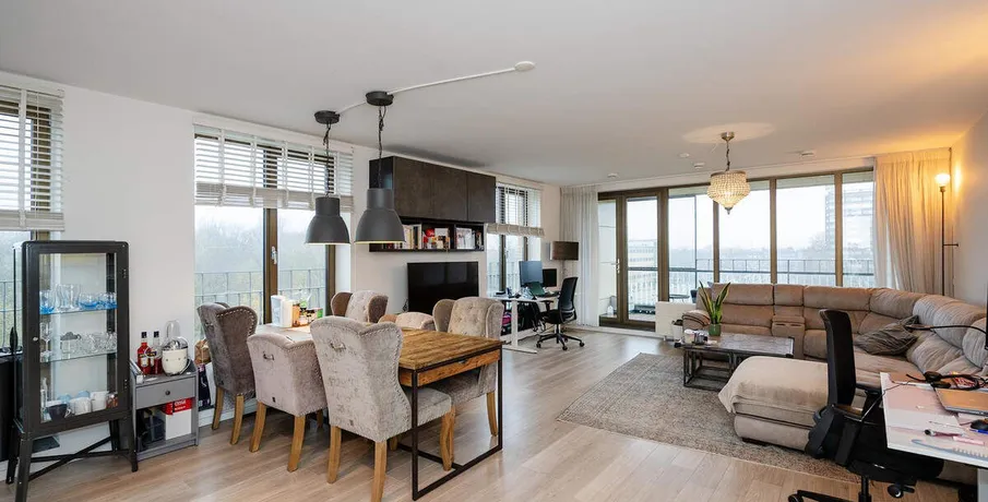 . Heerlijk licht en luxe gemeubileerd HOEKappartement van 85 m2 met vrij uitzicht, twee ruime slaapkamers, een groot terras en een optionele parkeerplaats.. Door de ligging op 4e etage is de woning heerlijk licht en heeft u geen directe overburen, waardoor u ook qua uitzicht en privacy niets meer te wensen heeft.. Omgeving:. De woning ligt in het Andreas Ensemble, een geliefde nieuwbouwwijk op een praktische locatie op de grens tussen Oud Zuid en Oud West. De woning ligt op slechts 5 minuten fietsen van het Vondelpark, Amstelveenseweg en Overtoom met een grote diversiteit aan winkels, supermarkten, cafés en restaurants. Een drankje op het terras bij Bar Kosta, lunchen bij ‘De Buren’, sporten bij David Lloyd of een hapje eten bij Gent aan de Schinkel; alles ligt binnen handbereik! Ook met de auto is de ligging gunstig; op twee minuten van de ringweg A10. Door de optionele parkeerplaats in de onderbouw, hoef je nooit meer naar een parkeerplek te zoeken. Kortom, een comfortabel appartement met een ideale indeling en prachtig uitzicht!. INDELING:. Via de stijlvolle gezamenlijke entree bereikt u de woning per lift of trap naar de vierde verdieping. Bij binnenkomst komt u in een royale hal die toegang biedt tot alle vertrekken. De modern ingerichte woonkamer is ruim opgezet en dankzij de grote raampartijen geniet u hier van veel natuurlijk daglicht. Aangrenzend aan de woonkamer bevindt zich een zonnig en ruim terras op het oosten. De open keuken is voorzien van een composiet werkblad en diverse inbouwapparatuur, waaronder een 5-pits inductiekookplaat, RVS afzuigkap, oven, magnetron, vaatwasser, koelkast en vriezer.. Centraal in de woning ligt de ruime badkamer met een douche en een dubbel wastafelmeubel. Daarnaast is er een separaat zwevend toilet met fonteintje. De aparte kast met aansluitingen voor wasmachine en droger biedt bovendien extra bergruimte.. De master bedroom beschikt over een tweepersoonsbed met kastruimte. De tweede slaapkamer is ingericht met een praktisch uitschuifbaar bed, waardoor de ruimte flexibel te gebruiken is en beschikt tevens over kastruimte.. Gemeubileerde woning. Beschikbaar per 20 december 2025 voor onbepaalde tijd. (Contract model A). Huurprijs: €3150,00 excl. g/w/l..
