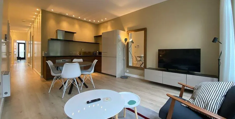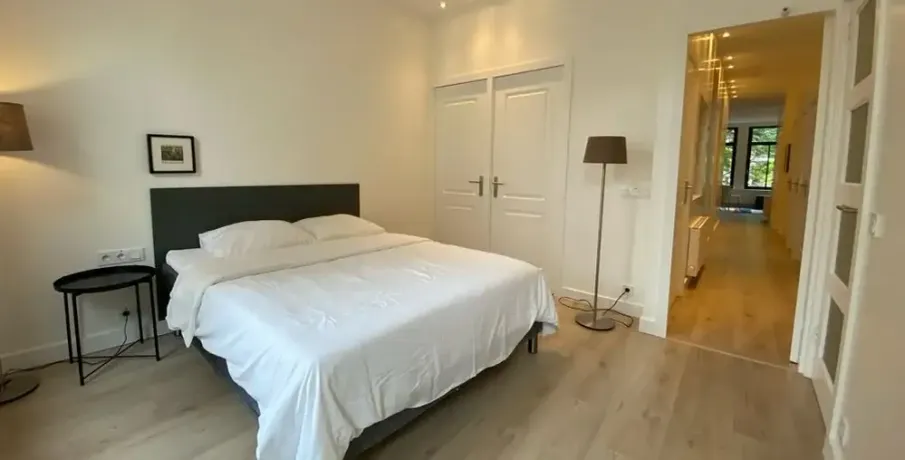 . Beschrijving. This new renovated 2 bedroom with 2 bathrooms on the second floor is in a prime location, in the Elandsgrachtbuurt and right in the center of Amsterdam. Quietly located in the well-known Jordaan and around the corner from the Nine Streets. An area known for the special galleries, specialty shops and separate shops. The well-known shopping streets and shops for daily shopping can be found in the immediate vicinity, as well as schools, childcare and sports facilities. The neighborhood is richly surrounded by cafes and restaurants. In addition, you will find numerous cultural sights and theaters in the immediate vicinity. Public transport is within walking distance and there is good access to the A-10 ring road.. Lay-out. frontside, living room with open kitchen with all built-in appliances, large windows creating a lot of natural light accessing the apartment. through the hall towards rear, bathroom with shower washbasin and toilet. bedroom spacious for a double bed and built-in wardrobes. at the rear, second bedroom with ensuite bathroom with shower, washbasin and second toilet. Separate room for laundry. Rent:€3950,00 excl. deposit: two months. available : in consultation.