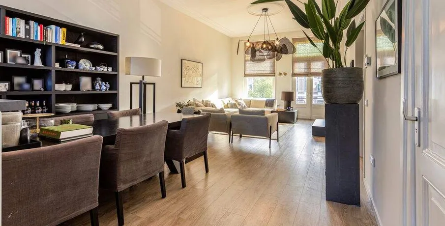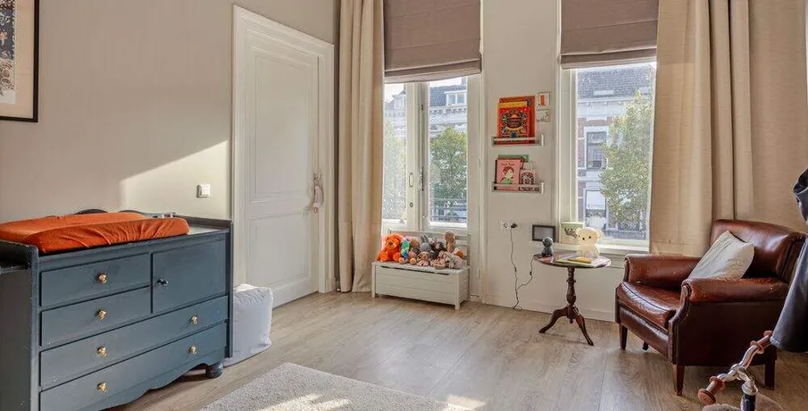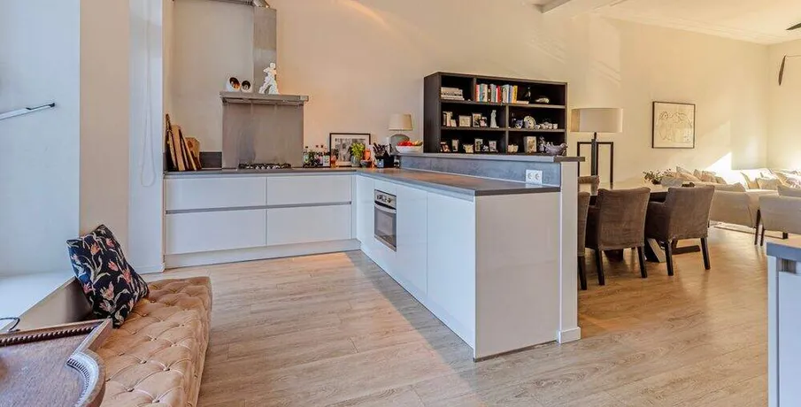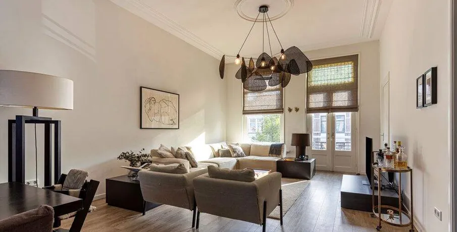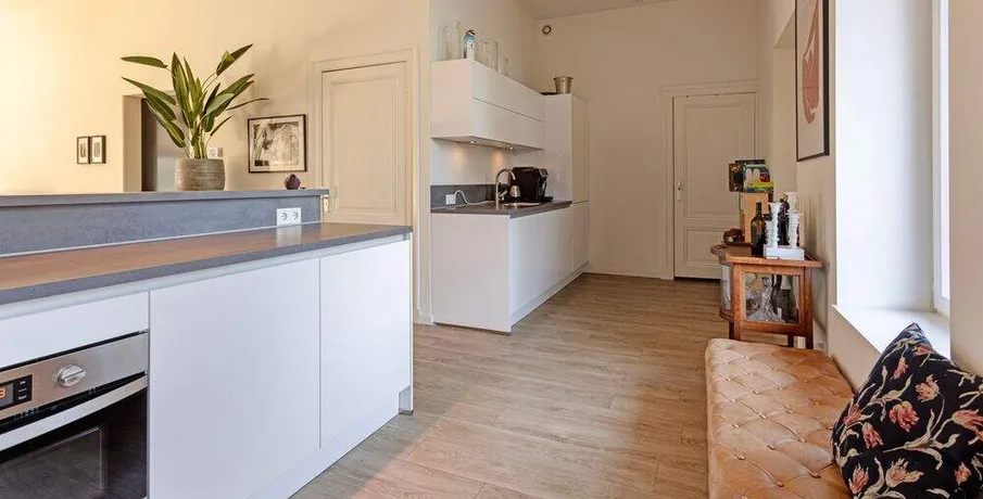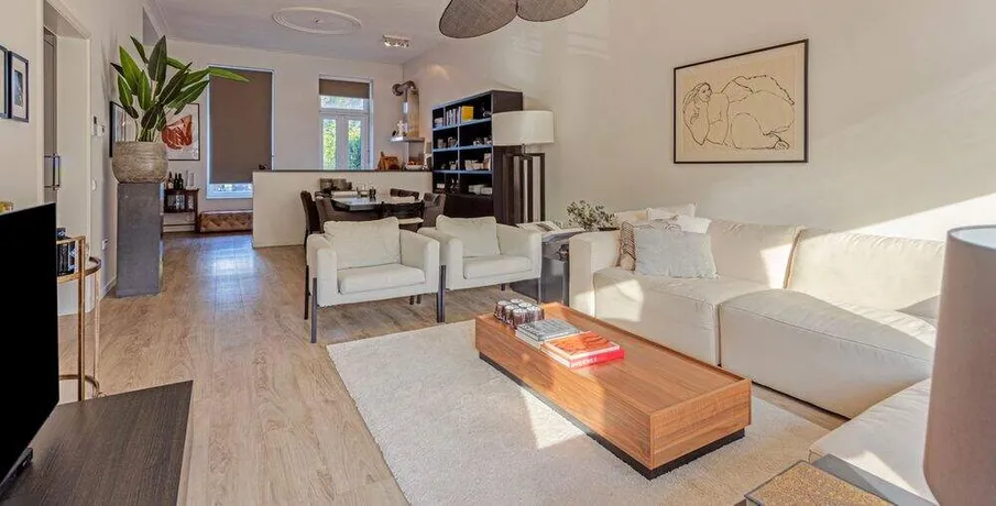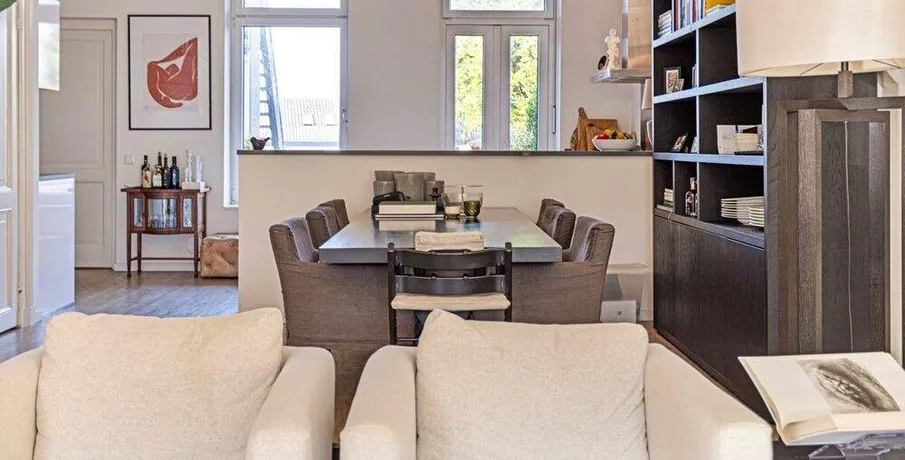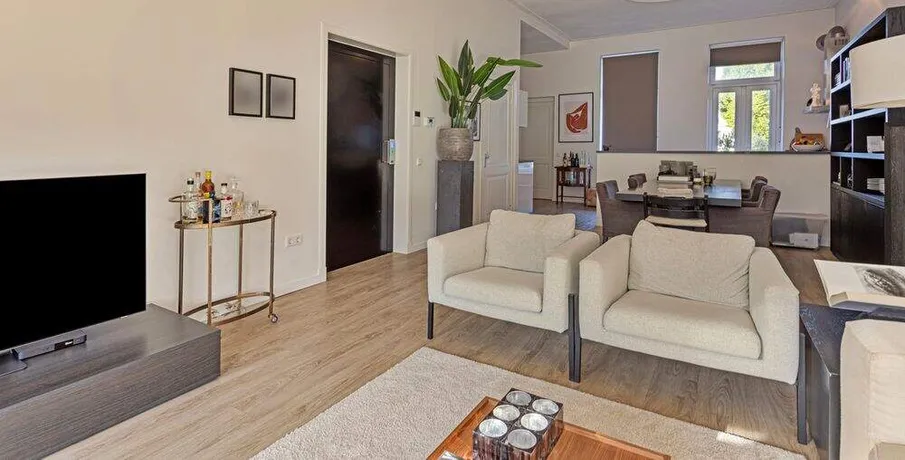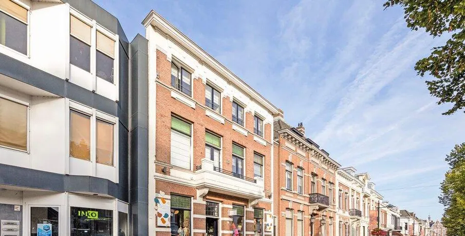 . Beschrijving. TE HUUR PER 01-02-2026: LUXE STADSAPPARTEMENT OP TOPLOCATIE IN BREDA!. In één van de mooiste delen van de binnenstad van Breda, aan de Nieuwe Ginnekenstraat, ligt dit unieke en volledig gerenoveerde stadsappartement van ca. 125 m².. De woning bevindt zich op de eerste verdieping van een karakteristiek pand en is bereikbaar via een lift die direct uitkomt in de living – een exclusief element dat zorgt voor privacy, comfort en allure.. Het appartement is in 2019 volledig vernieuwd, waarbij klassieke elementen als hoge ornamentenplafonds zijn behouden en gecombineerd met moderne luxe, vloerverwarming en hoogwaardige afwerking.. Indeling. Entree & lift. De woning is te bereiken via een stijlvolle entree met video-intercom en elektronische tag. De lift opent rechtstreeks in de living. Aan de achterzijde bevindt zich een brede stalen trap als tweede toegang.. Living & keuken (ca. 56 m²). Een royale woonkamer met hoge plafonds, ornamenten en grote raampartijen aan de straatzijde zorgen voor een lichte en sfeervolle ruimte.. De moderne open keuken (hoek-/eilandopstelling) is volledig uitgerust met. inductiekookplaat, afzuigkap, combimagnetron/oven, vaatwasser en koel-/vriescombinatie.. Slaapkamers. Twee ruime slaapkamers van respectievelijk ca. 21 m² en ca .17 m² met grote ramen en toegang tot het terras. Beide kamers zijn voorzien van gordijnen en houtlook-PVC vloer.. Badkamers. Twee moderne badkamers, elk met inloopdouche, wastafelmeubel en toilet. Aparte was-/bergruimte met aansluiting voor wasmachine en droger.. Terras. Een prachtig, zuidgericht dakterras van ca. 26 m² aan de achterzijde van het pand — perfect voor loungen of dineren in de zon.. Locatie. De Nieuwe Ginnekenstraat ligt in het zuidelijke deel van de binnenstad, tussen het Ginneken en de Wilhelminastraat. Op loopafstand bevinden zich het Valkenbergpark, de Grote Markt en een breed aanbod aan restaurants, cafés en winkels. Een perfecte combinatie van stadse levendigheid en wooncomfort in één van de meest geliefde straten van Breda.. LET OP: De woning kan zowel gemeubileerd als ongemeubileerd worden verhuurd. Kosten voor meubilering zijn €500,00 per maand..