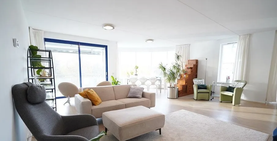 . Beschrijving. Prachtig volledig gemeubileerd appartement gelegen op de 3e verdieping met uitzicht over het kanaal. Woonkamer van ca. 55m2 met veel ramen rondom en aansluitend balkon. Aparte keuken voorzien van apparatuur. 2 slaapkamers van ca. 25m2 voorzien van 2-persoonsbedden. Badkamer met douche, toilet ligbad en dubbele wastafel.Huurprijs is ⬠3.000,- excl. de garage zit hierbij inbegrepen..