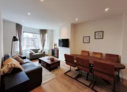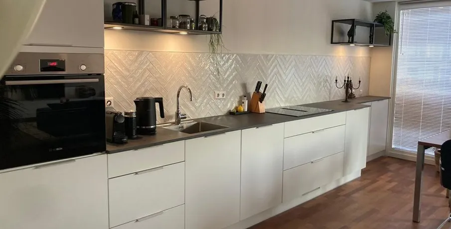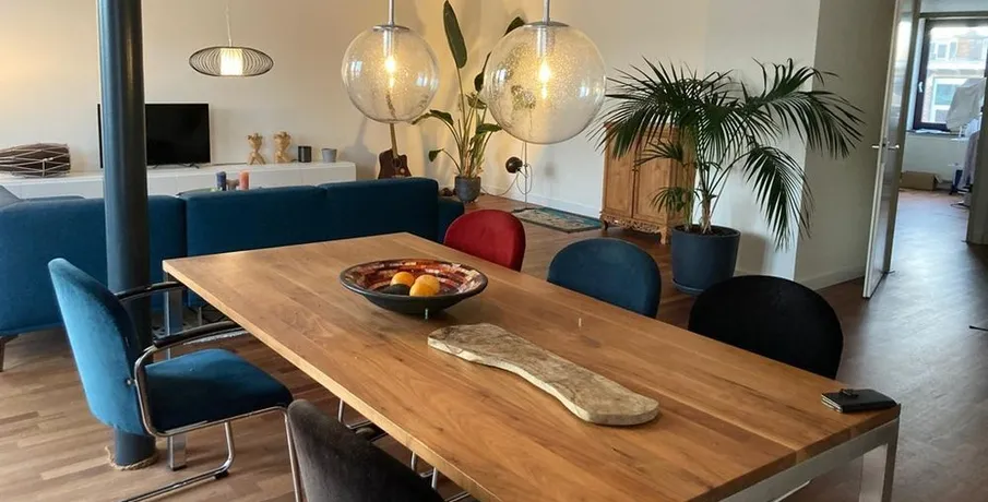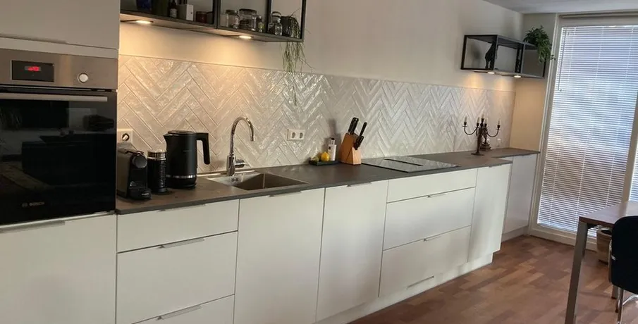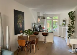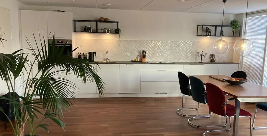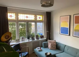 . Beschrijving. Turn-key and fully furnished apartment with 2 bedrooms and a nice terrace at Kepplerstraat. This apartment is approx. 90m2 and situated on the 3rd floor of a modern apartment building with elevator access and a separate storage in the basement. The building was built in the year 2000 and the apartment has an A-label energy rating. Excellent option for a working couple in The Hague that wishes to live close to the cozy Weimarstraat shopping street and near to public transport connections to the city centre and central station.. Layout. Shared entrance from the street with video bell-system and door to the stairs and elevator. On the 3rd floor the entrance to the apartment to hallway with doors to all the rooms. The living room is spacious and bright with a brand new and modern kitchen and stylish furniture, doors to the balcony which is as long as the apartment itself. 2 spacious bedrooms, one bedroom could be used as a home office. Bathroom with shower cabin, toilet, sink, towel radiator. Laminate flooring, centrally heated and double glazed. Storage room available in the basement.. Location. Within walking distance you will not only find nice shops in Weimarstraat, but also the nice neighborhood/play park De Verademing and the charming Emma's Hof. If you take your bike you can be on the beach or in the forest within 10 minutes.. Eating options can also be found in these streets, but also within walking distance, including around Regentesseplein, Koningsplein and also in the Zeeheldenkwartier. Public transport to the beach, the city or the train stations stops around the corner with Randstadrail line 3 and tram line 11. Main roads can also be reached within minutes. In the middle of the city, a wonderful living environment with everything nearby. All this contributes to the pleasant living environment that appeals to many people in the neighborhood.. Features. - A-label. - Turn-key and furnished. - Modern building. - Elevator access. - Large balcony. - Storage room. - 2 bedrooms. Rental price: €2295,- excluding utilities - Furnished.