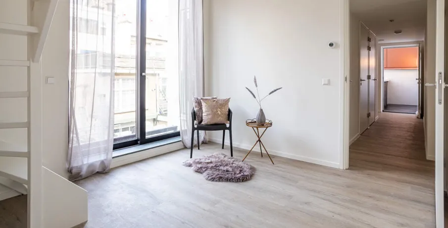 . HIGHLIGHTS. - Luxe appartementen;. - Hoogwaardig gerenoveerd;. - Woonoppervlakte: ca. 108 m²;. - Energielabel A++: duurzaam en energiezuinig;. - Balkon met een fraai uitzicht;. - Moderne keuken en badkamer met luxe afwerking;. - Hoge plafonds en een indrukwekkende vide;. - Vloerverwarming door het hele appartement;. - Lift aanwezig in het gebouw;. - Mogelijkheid tot huren van een parkeerplaats in Q-Park tegen gereduceerd tarief (zolang beschikbaar).. Bent u op zoek naar een stijlvol, modern appartement dat luxe en ruimte perfect combineert? Dit hoogwaardige nieuwbouwappartement aan de biedt een unieke woonervaring, dankzij de strakke afwerking, hoge plafonds en een indrukwekkende vide met twee ruime vertrekken, die zorgt voor een ruimtelijk gevoel. Gelegen in het bruisende hart van Den Haag, is dit appartement de ideale keuze voor wie op zoek is naar comfort en stijl.. Hoogtepunten van dit appartement:. Nieuwbouwcomplex: Geniet van de voordelen van duurzaam en energiezuinig wonen.. Vide: De hoge plafonds en de vide zorgen voor een unieke uitstraling en een prachtige woonbeleving.. Licht en ruim: Grote raampartijen en een open indeling maken het appartement extra licht en uitnodigend.. Balkon: Perfect om te ontspannen en te genieten van een moment in de buitenlucht.. Hoogwaardige afwerking: Gebruik van duurzame materialen en luxe details door het hele appartement.. Indeling:. Entree: Ruime hal met toegang tot een apart toilet, inpandige berging en wasruimte.. Woonkamer en vide: De royale woonkamer met hoge plafonds (4.52 meter) biedt een stijlvolle leefruimte en geeft toegang tot het balkon. De vide biedt extra ruimte, ideaal als werkplek, hobbyruimte of lounge.. Open keuken: Modern en strak, voorzien van luxe inbouwapparatuur zoals een inductiekookplaat, combi-oven, vaatwasser en koel-vriescombinatie.. Slaapkamer: Ruime slaapkamer met veel lichtinval en praktische indeling.. Badkamer: Luxe afgewerkt met een inloopdouche, wastafel en strak tegelwerk.. Berging: Praktische inpandige berging met aansluitingen voor de wasmachine en extra opbergruimte.. Locatie: , Den Haag. Gelegen in een sfeervolle straat, op loopafstand van het bruisende centrum van Den Haag. Winkels, restaurants, en openbaar vervoer bevinden zich binnen handbereik, terwijl u thuis geniet van rust en comfort.. Belangrijkste kenmerken:. - Woonoppervlakte: ca. 108 m²;. - Energielabel A++: duurzaam en energiezuinig;. - Balkon met een fraai uitzicht;. - Moderne keuken en badkamer met luxe afwerking;. - Hoge plafonds en een indrukwekkende vide;. - Vloerverwarming door het hele appartement;. - Lift aanwezig in het gebouw;. - Mogelijkheid tot huren van een parkeerplaats in Q-Park tegen gereduceerd tarief (zolang beschikbaar).. Bent u op zoek naar een uniek, modern en luxe appartement met een vide? Maak snel een afspraak voor een bezichtiging en laat u verrassen door dit prachtige nieuwbouwappartement in Den Haag!. De informatie in deze advertentie is met zorg samengesteld. Aan de inhoud kunnen echter geen rechten worden ontleend.. ** English summary below**. For Sale: Luxury already completed New-Build Apartment with Mezzanine – , The Hague. Are you looking for a stylish, modern apartment that perfectly combines luxury and space? This high-quality new-build apartment on offers a unique living experience with sleek finishes, high ceilings, and an impressive mezzanine featuring two spacious rooms, creating an open and spacious atmosphere. Located in the vibrant heart of The Hague, this apartment is the ideal choice for those seeking both comfort and elegance.. Key Features of This Apartment:. New-Build Complex: Enjoy the benefits of sustainable and energy-efficient living.. Mezzanine: High ceilings and the mezzanine create a distinctive and airy living space.. Bright and Spacious: Large windows and an open layout provide plenty of natural light and a welcoming ambiance.. Balcony: Perfect for relaxing and enjoying fresh air.. Premium Finishes: High-quality materials and luxurious details throughout the apartment.. Layout:. Entrance: Spacious hallway with access to a separate toilet, indoor storage, and laundry space.. Living Room and Mezzanine: The generous living room with high ceilings (4.52 meters) offers a stylish living area with access to the balcony. The mezzanine adds extra space, ideal as a home office, lounge, or hobby area.. Open Kitchen: Modern and sleek, equipped with premium built-in appliances, including an induction cooktop, combi-oven, dishwasher, and fridge-freezer.. Bedroom: Large bedroom with ample natural light and a practical layout.. Bathroom: Luxuriously finished with a walk-in shower, sink, and elegant tiling.. Storage Room: Convenient indoor storage space with washer and dryer connections.. Location: , The Hague. Situated on a charming street, just a short walk from the lively city center of The Hague. Shops, restaurants, and public transport are within easy reach, while you can enjoy peace and comfort at home.. Main Features:. - Living area: approx. 108 m²;. - Energy label A++: sustainable and energy-efficient;. - Balcony with a lovely view;. - Modern kitchen and bathroom with premium finishes;. - High ceilings and an impressive mezzanine;. - Underfloor heating throughout the apartment;. - Elevator in the building;. - Option to rent a parking space at Q-Park at a reduced rate (subject to availability).. Are you looking for a unique, modern, and luxurious apartment with a mezzanine? Schedule a viewing today and let yourself be amazed by this stunning new-build apartment in The Hague!. The information in this advertisement has been carefully compiled. However, no rights can be derived from its content..