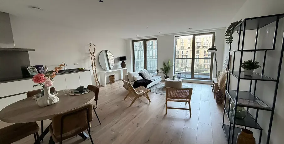 OPEN HUIS! WOENSDAG 18 MAART 2026 VAN 15:00 TOT 16:00 UUR!. Ben je op zoek naar een ruim en comfortabel appartement op een ideale locatie vlak bij het bruisende centrum van Haarlem? Dit moderne 3-kamerappartement van 95 m² in project Elements biedt alles wat je nodig hebt voor ontspannen en energiezuinig wonen.. In dit appartement op de 3e verdieping geniet je van een lichte woonkamer, een volledig ingerichte moderne witte keuken met hoogwaardige Siemens-inbouwapparatuur en een stijlvol betegelde badkamer met inloopdouche, wastafel met spiegel en comfortabele vloerverwarming. Het balkon op het westen zorgt ervoor dat je na een drukke dag heerlijk van de avondzon kunt genieten. Bovendien beschik je over een eigen parkeerplaats in de parkeergarage.. Elements ligt in een groene, rustige en parkachtige omgeving, maar toch op slechts 10 minuten fietsen van de Haarlemse binnenstad. Ook uitvalswegen richting Amsterdam en Rotterdam zijn snel bereikbaar. Hier woon je in een nieuw en duurzaam stadsdeel waar ruimte, modern comfort en natuur samenkomen.. De appartementen in Elements – verspreid over de gebouwen Suriname en Amerika – bieden veel variatie: van compacte tot royale woningen, met 2, 3 of 4 kamers en oppervlaktes van 49 tot 121 m². Dit appartement geeft je een uitstekend beeld van de hoogwaardige afwerking binnen het hele complex.. Let op: de foto’s zijn van een vergelijkbare woning en dienen ter illustratie van afwerking en ruimte.. Interesse?. Ga in de woningpresentatie op onze website naar [REAGEER] en geef hiermee aan dat je geïnteresseerd bent.. Inkomensnormen en inschrijfdocumentatie. Hiervoor verwijzen we je door naar onze website.. Borg. Verhuurder kan om haar moverende redenen borg vragen. Dit kan o.a. afhankelijk zijn van de werksituatie van de kandidaten.. Huurprijswijziging. Voor huurwoningen met een geliberaliseerde huurprijs geldt een jaarlijkse huurverhoging van maximaal CPI +3%, tenzij er in enig jaar door de Rijksoverheid een andere maximale huurprijsverhoging voor geliberaliseerde zelfstandige huurwoningen is vastgesteld. In het geval van een gereguleerde huurprijs bepaalt de Rijksoverheid jaarlijks het percentage van de huurverhoging.. **Vb&t streeft ernaar om je zo goed mogelijk aan een passende huurwoning te helpen. Om dit te realiseren verzoeken wij je om jezelf in te schrijven via onze website. Inschrijven is altijd kosteloos en geheel vrijblijvend. Je kunt je inschrijven voor woningen die direct beschikbaar zijn, maar ook voor woningen die mogelijk toekomstig beschikbaar komen. Op basis van de door jou verstrekte informatie word je door ons automatisch per e-mail geïnformeerd wanneer er woningen beschikbaar zijn die voldoen aan je woonwensen. Je kunt gratis en eenvoudig inschrijven op onze website.**. **Deze informatie is met de grootst mogelijke zorg samengesteld. Toch kunnen wij niet altijd voorkomen dat de informatie enigszins afwijkt van hetgeen je in of rond de woning ziet of hebt gezien. Dit kan met name gelden voor de brochure tekst, de plattegronden en maatvoeringen. Hieraan kunnen dan ook geen rechten worden ontleend.**. Verberg volledige omschrijving.... Algemeen: : Servicekosten: : € 60,-: Energielabel: : A+++: Aanvaarding: : Per direct: Huurtermijn (min.): : 12 maanden: Aantal reacties: : 29: Overige kosten: : Waarborgsom: : € 0,-: Parkeerkosten p/m: : € 115,-: Bouw: : Soort object: : Appartement: Soort bouw: : Bestaande bouw: Bouwjaar: : 2023: Soort dak: : Plat dak: Oppervlakten en inhoud: : Woonoppervlakte: : 94 m²: Inhoud: : 251 m³: Aanvullende informatie: : WOZ waarde: : € 578.000,-: WOZ peildatum: : 1-1-2025: WWS-punten: : 241