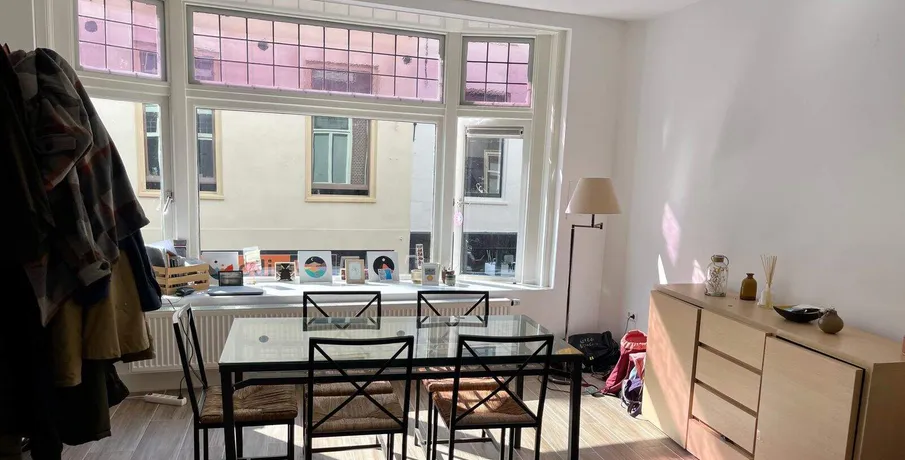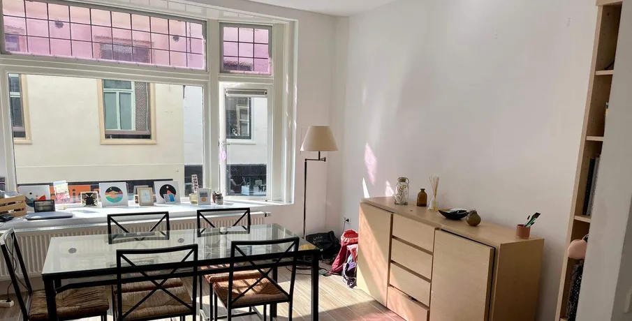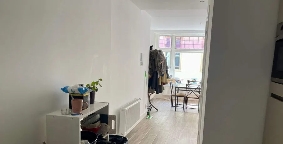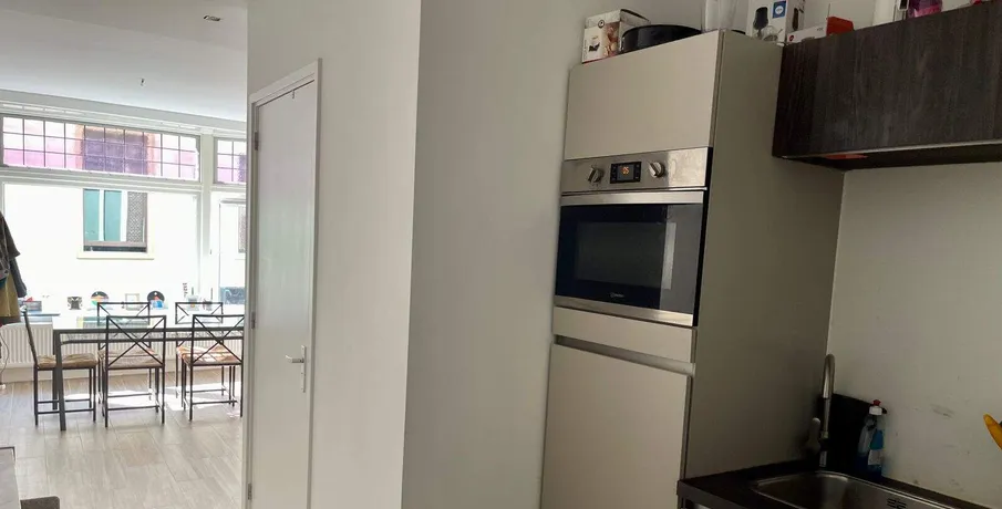 . Beschrijving. Leuk appartement beschikbaar op een toplocatie!. ● Samenvatting:. - Gerenoveerd in 2021!. - Gestoffeerde oplevering. - 2 slaapkamers. - 1 badkamer met douche. - Keuken voorzien van diverse inbouwapparatuur. - Huurprijs €1440,- incl. voorschot €82,50 g/w/e. - Aparte meters (huurprijs inclusief voorschot nutsvoorzieningen), huur exclusief levering tv/internet. - Borg twee maanden huur. - Eenmalige kosten worden in rekening gebracht door de eigenaar. - Beschikbaar per 1 november aanstaande. Dit appartement bevindt zich aan de Haarlemmerstraat, dé winkelstraat van Leiden. Winkels, diverse supermarkten en restaurants, allemaal om de hoek! Met 5 minuten fietsen sta je bij het centraal station en uitvalswegen als de A4 en A44 zijn tevens gemakkelijk te bereiken.. En dan nu meer over het appartement zelf:. Wanneer je de deur beneden open doet kom je in het trappenhuis. Het trappenhuis brengt je naar de 1e verdieping waar zich tevens het appartement bevindt. Via de hal bereik je de ruime keuken en de badkamer. De keuken beschikt over alles wat je nodig hebt om een heerlijk maaltje klaar te maken!. Aan de voorzijde van het appartement bevindt zich de ruime woonkamer welke goed in te delen is door de L-vorming. Daarnaast zorgen de grote ramen voor veel lichtinval. Via een trap naar boven bereik je de 2 slaapkamers en het terras.. De kleinere kamer kan gebruikt worden als zowel slaap-, studeer-, of hobbykamer.. Dit appartement is ideaal voor een werkend stel.. Helaas is het niet geschikt voor delers.. Ben jij enthousiast geworden? Reageer dan snel op deze advertentie en laat ons weten waarom jij/jullie de ideale huurder(s) zijn!. Ondanks dat deze aanmelding met grote zorgvuldigheid is samengesteld, kunnen geen rechten worden ontleend aan teksten, berekeningen, aanbiedingen evenals aan afgebeelde illustraties en artists-impressions, deze zijn uitsluitend bedoeld als voorbeeld en daardoor niet bindend voor het eindresultaat. Alle informatie, ook prijzen en voorwaarden, kunnen aan verandering onderhevig zijn.. ● ENGLISH●. Nice flat available in a prime location!. ● Summary:. - Renovated in 2021!. - Unfurnished delivery. - 2 bedrooms. - 1 bathroom with shower. - Kitchen with appliances. - Rental price €1440,- incl. advance payment €82,50 g/w/e. - Separate meters (rent including advance payment of utilities), rent excluding TV/internet supply. - Deposit two months rent. - One-off costs will be charged by the owner. - Available per 1 November. This flat is located on the Haarlemmerstraat, the shopping street of Leiden. Shops, several supermarkets and restaurants, all around the corner! With 5 minutes cycling you are at the central station and arterial roads like the A4 and A44 are also easy to reach.. And now more about the flat itself:. When you open the door downstairs you enter the stairwell. The staircase takes you to the 1st floor where the flat is also located. Through the hall you reach the spacious kitchen and the bathroom. The kitchen has everything you need to prepare a delicious meal!. At the front of the apartment you will find the spacious living room, which is easy to divide thanks to its L-shape. In addition, the large windows provide plenty of light. Stairs lead up to the 2 bedrooms and the terrace.. The smaller room can be used as a bedroom, study or hobby room.. This flat is ideal for a working couple.. Unfortunately, it is not suitable for sharers.. Have you become enthusiastic? Then respond quickly to this ad and let us know why you/you are the ideal tenant(s)!. Although this application has been compiled with great care, no rights can be derived from texts, calculations, offers as well as illustrations and artist impressions shown, these are only meant as examples and are therefore not binding for the final result. All information, including prices and conditions, is subject to change..