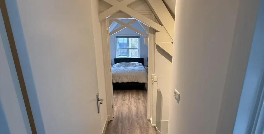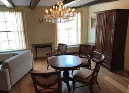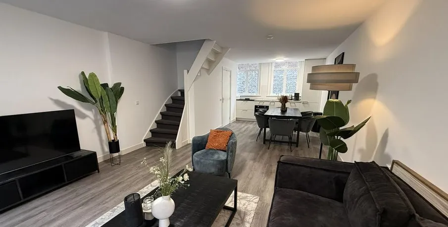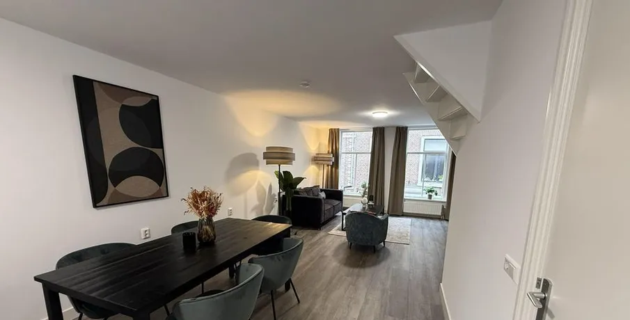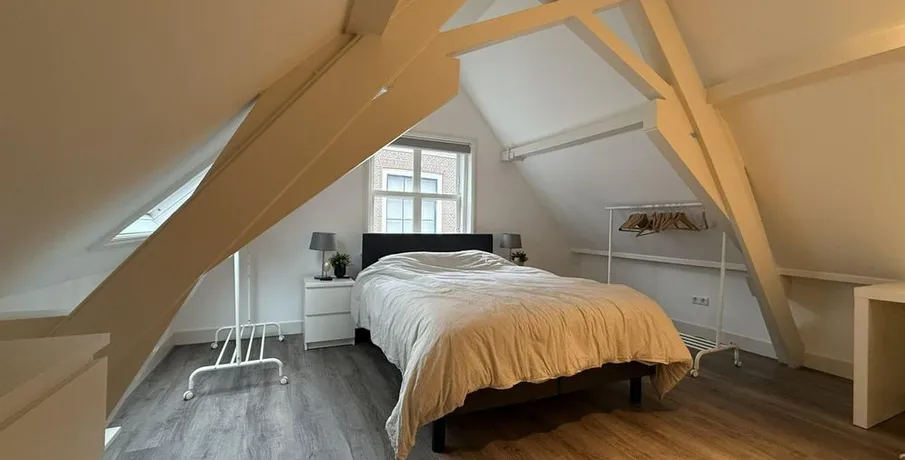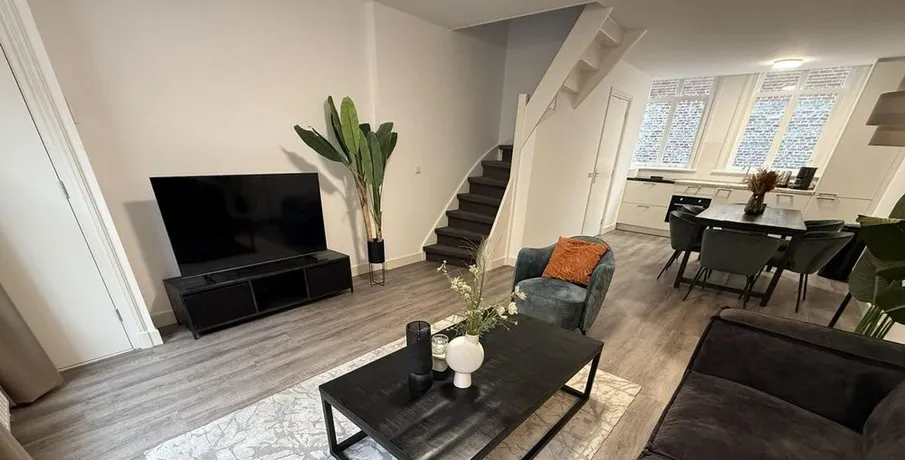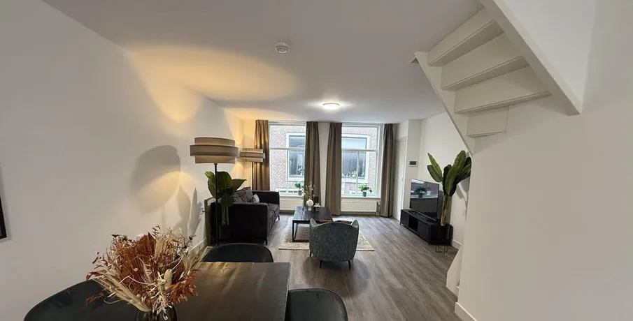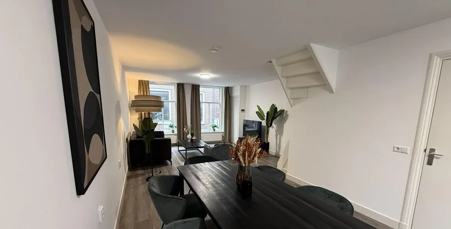 . Beschrijving. Located in the middle of the old historical center of Leiden, near the castle "De Burcht".Monumental 3 room apartment on the first floor, modern renovated 17th century house.Living room with kitchen at the first floor. Completely renovated and it is furnished. Light (windows all around) living room with the old monumental beams. Open kitchen fully equipped, 2 bedroom, bathrooms, separ....