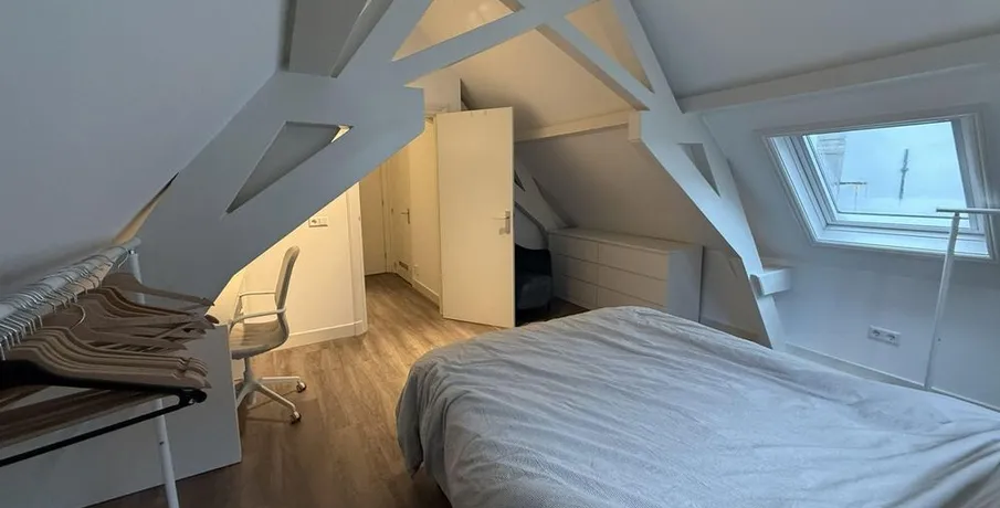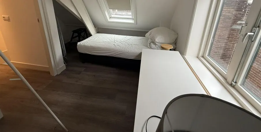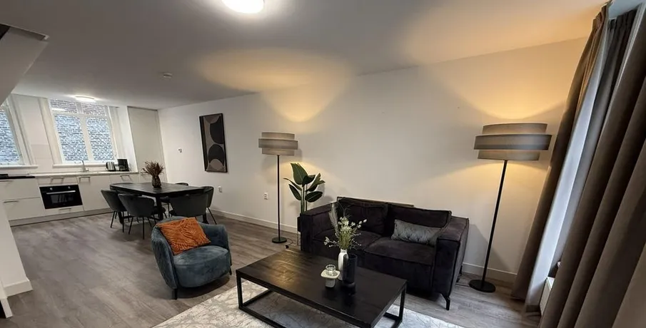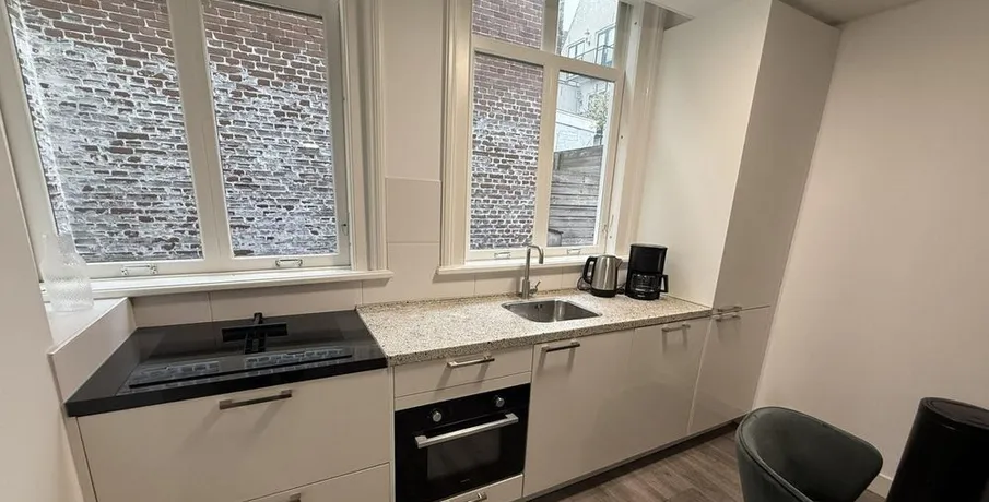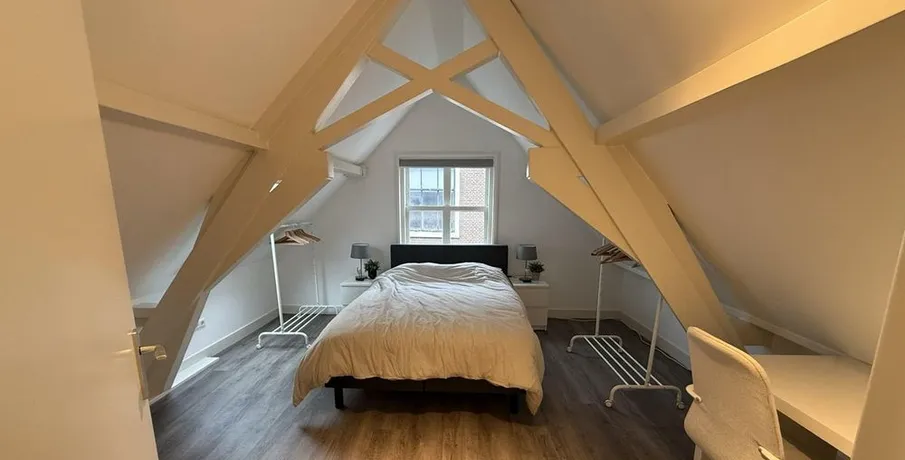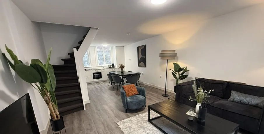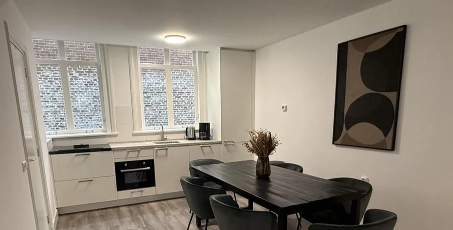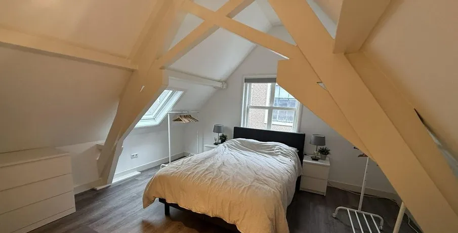 . Beschrijving. Located in the middle of the old historical center of Leiden, near the castle "De Burcht".Monumental 3 room apartment on the first floor, modern renovated 17th century house.Living room with kitchen at the first floor. Completely renovated and it is furnished. Light (windows all around) living room with the old monumental beams. Open kitchen fully equipped, 2 bedroom, bathrooms, separ....