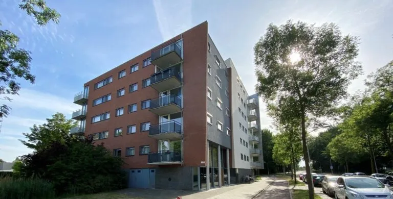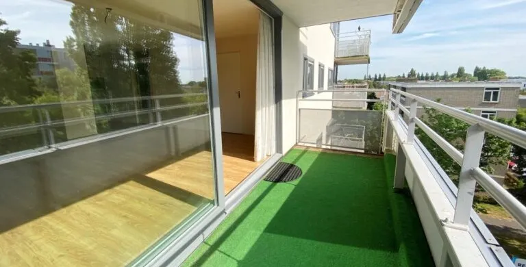. Beschrijving. , LEIDEN. In een rustige en gemoedelijke buurt op korte afstand van alle voorzieningen, vindt u dit gestoffeerde 3-kamer (2 slaapkamer) appartement op de 5e etage met balkon op het zuid-westen en een berging in de onderbouw.. De is gelegen op loopafstand van winkelcentrum De Luifelbaan voor al uw dagelijkse boodschappen. Op korte fietstafstand vindt u sportvoorzieningen, NS-station Leiden Centraal evenals de gezellige binnenstad van Leiden met vele winkels en speciaalzaken, horecavoorzieningen, uitgaansgelegenheden en culturele voorzieningen als (film)theaters, een bibliotheek en diverse musea. Via de uitvalswegen A4, A44 en N11 rijdt u in korte tijd naar steden als Rotterdam, Den Haag, Utrecht en Amsterdam.. Indeling:. Gemeenschappelijke entreehal met brievenbussen, bellentableau en lift naar de verschillende etages.. Entree via de hal met garderobe, meterkast, separaat toilet, intercom, inbouwkasten en toegang tot vrijwel alle woon- en gebruiksruimtes. De woonkamer is prettig licht door grote raampartijen op het zuidwesten en beschikt over een schuifpui naar het balkon en toegang naar halfopen keuken. In de keuken vindt u een L-vormig werkblad en inbouwapparatuur als een vierpits inductiekookplaat, afzuigkap, combimagnetron, vaatwasser en koelkast.. Twee slaapkamers, bereikbaar via de woonkamer en de hal. Beide slaapkamers zijn voorzien van radiator, raampartijen met openslaande ramen en ventilatieroosters.. De ruime badkamer is geheel betegeld. U vindt hier een designradiator, wastafel en inloopdouche met glazen wand.. Bijzonderheden:. Huurprijs van € 1.695,- is excl. gas, elektra en water. Beschikbaar per 1 juli 2025. Gestoffeerde oplevering. Berging in de onderbouw. Balkon op het Zuid-Westen. Niet geschikt om te delen.