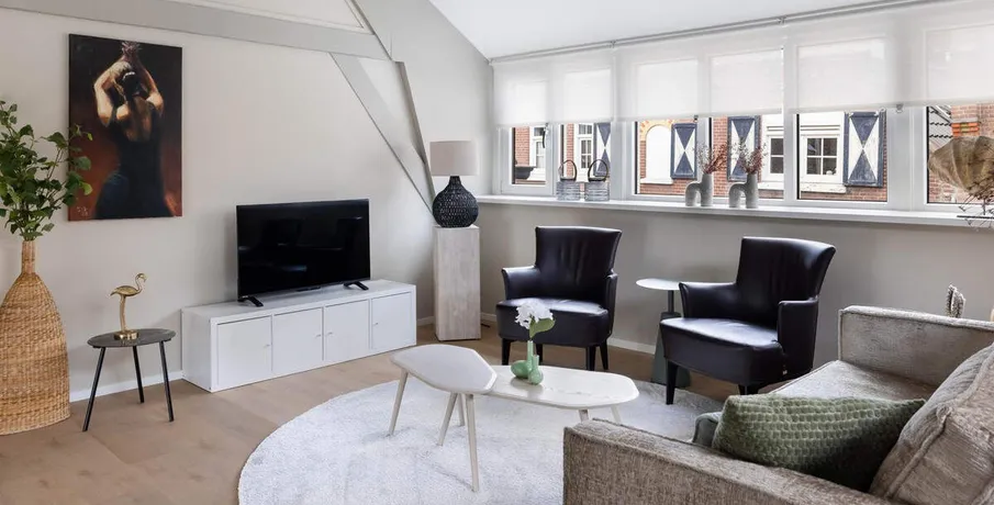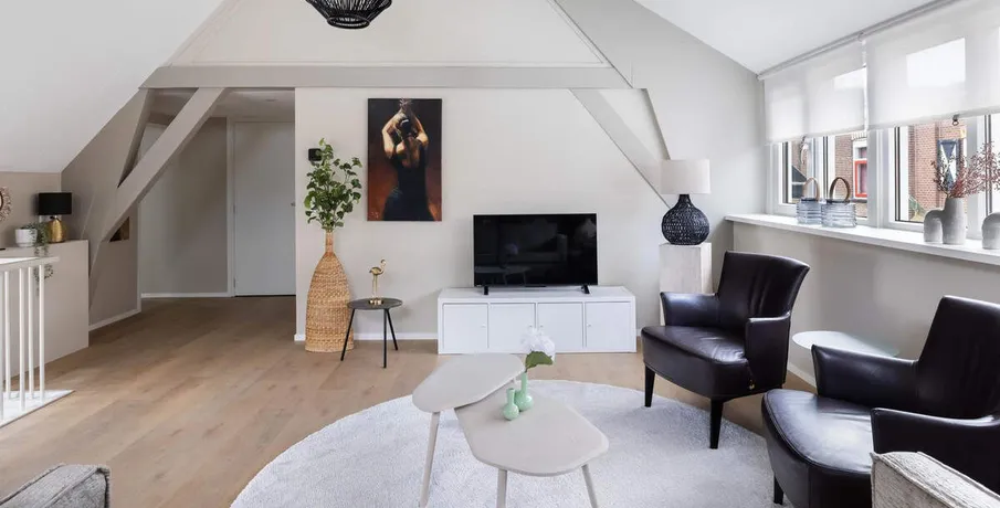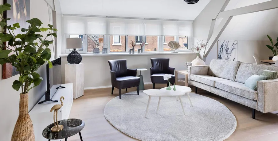 . ENGLISH TEXT BELOW. Luxe short-stay woning in Ridderkerk. 4 bedden, centraal gelegen, all-in huur.. Zoek je een comfortabel verblijf voor jezelf of een medewerker? Dan is dit gloednieuwe, gerenoveerde appartement precies wat je nodig hebt.. Volledig gemeubileerd, stijlvol ingericht en van alle gemakken voorzien, het is een warm thuis voor (internationale) werknemers die tijdelijk willen verblijven.. Met 4 slaapplaatsen, een moderne keuken en badkamer, biedt deze woning een luxe alternatief voor een hotel. Ideaal voor expats, consultants, projectmedewerkers of als tijdelijke overbrugging.. BELANGRIJKE INFORMATIE EN HUURVOORWAARDEN:. – Gemeubileerde huurprijs € 2.200,- per maand exclusief BTW;. – Vaste kosten voor gas, water, elektra, internet € 300,- per maand inclusief BTW;. – Waarborgsom: één maand;. – Volledig gestoffeerd en gemeubileerd;. – Huurtermijn minimaal 3 maanden, langere periode in overleg;. – Woonoppervlakte: ca. 82m2;. – Geschikt voor maximaal 4 personen;. – Geen huisdieren;. – Niet roken;. – Parkeerplaats;. – Check beschikbaarheid!. Geheel gerenoveerd appartement in het historische centrum van Ridderkerk, op loopafstand van winkels, restaurants en alle dagelijkse voorzieningen. Het appartement heeft een woonoppervlakte van ca. 82m2 en heeft naast een gezellige woonkamer, 2 slaapkamers met beide 2 slaapplaatsen, moderne keuken en badkamer. De gehele woning is voorzien van vloerverwarming. Het appartement wordt volledig gemeubileerd en gestoffeerd verhuurd.. De uitvalswegen richting Rotterdam, Dordrecht en Utrecht zijn binnen enkele minuten bereikbaar.. Entree. Entree met brievenbus, berging en trapopgang naar de eerste verdieping en direct toegang tot woonkamer met open keuken.. Speelse en lichte woon- en eetkamer met open keuken, gelegen aan de voorzijde van de woning. De woonkamer, met een nokhoogte van 3,09 meter en grote raampartijen, is voorzien van een neutrale laminaatvloer en een gezellige zithoek met tv. Centraal in deze ruimte bevindt zich de moderne keuken met kookeiland, in rechte opstelling en uitgerust met een koel-vriescombinatie, vaatwasser, inductiekookplaat met geïntegreerde afzuiging, combi-oven en volop kastruimte. Daarnaast is er een praktisch barretje waar je gezellig kunt zitten.. De eerste slaapkamer is bereikbaar vanuit de woonkamer. Deze praktisch ingedeelde kamer biedt een tweepersoonsbed en een grote kledingkast. Dankzij de dakramen is er volop natuurlijk licht. Aangrenzend bevindt zich een separate berging, ideaal voor extra opbergruimte.. De tweede slaapkamer beschikt over 2 aparte bedden en bovenkasten voor diverse spullen op te slaan.. Deze volledig betegelde badkamer beschikt over een inloopdouche, wastafel inclusief meubel, designradiator en een wasmachine-droger combinatie. Het separate toilet ligt direct naast de badkamer.. Is jouw interesse gewekt?. Neem dan contact op met ons kantoor voor de beschikbaarheid en het plannen van een bezichtiging.. ENGLISH TEXT. Luxury short-stay apartment in Ridderkerk. 4 beds, centrally located, all-inclusive rental.. Looking for comfortable accommodation for yourself or an employee? This brand-new, renovated apartment is exactly what you need.. Fully furnished, stylishly decorated and fully equipped, it's a warm home for (international) employees looking for a temporary stay.. With four beds, a modern kitchen and bathroom, this apartment offers a luxurious alternative to a hotel. Ideal for expats, consultants, project staff, or as a temporary solution.. IMPORTANT INFORMATION AND RENTAL CONDITIONS:. – Furnished rental price: €2,200 per month excluding VAT;. – Fixed costs for gas, water, electricity, and internet: €300 per month including VAT;. – Deposit: one month;. – Fully furnished and equipped;. – Minimum rental period: 3 months, longer periods negotiable;. – Living area: approx. 82m²;. – Suitable for a maximum of 4 people;. – No pets;. – No smoking;. – Parking space;. – Check availability!. Fully renovated apartment in the historic center of Ridderkerk, within walking distance of shops, restaurants and all daily amenities.. The apartment has a living area of ??approximately 82m² and features a cozy living room, two bedrooms with two single beds each, a modern kitchen and bathroom. The entire apartment has underfloor heating. The apartment is rented fully furnished.. The highways to Rotterdam, Dordrecht and Utrecht are within a few minutes.. Entrance. Entrance with mailbox, storage room, and stairs to the first floor and direct access to the living room with open-plan kitchen.. A playful and bright living and dining room with open-plan kitchen is located at the front of the apartment. The living room, with a height of 3.09 meters and large windows, features neutral laminate flooring and a cozy sitting area with a TV. Centrally located in this space is the modern kitchen with a cooking island, is equipped with a refrigerator-freezer, dishwasher, induction cooktop with integrated extractor hood, combination oven and plenty of cupboard space. There is also a practical bar where you can sit comfortably.. The first bedroom is accessible from the living room. This practically designed room offers a double bed and a large wardrobe. Skylights provide plenty of natural light. Adjacent is a separate storage room.. The second bedroom has two single beds and wall units for storing various items.. The fully tiled bathroom features a walk-in shower, a vanity unit, a designer radiator and a washer-dryer combination. The separate toilet is located directly next to the bathroom.. Interested?. Please contact our office to inquire about availability and schedule a viewing..