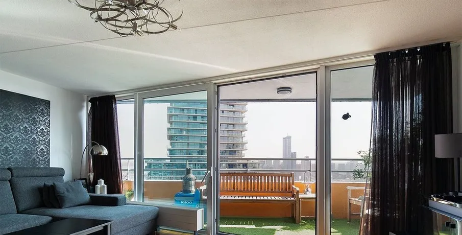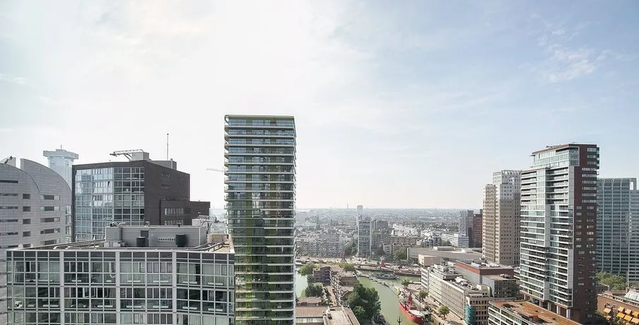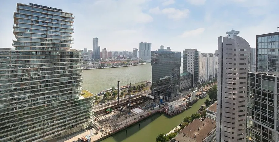. Beschrijving. Prachtig en ruim 3 slaapkamer appartement met balkon en waanzinnig uitzicht! Gelegen op loopafstand van Markthal van Rotterdam. Gelegen nabij metro- en tramhalte. 2 haltes met de metro naar het Centraal Station. Supermarkt op 2 minuten loopafstand. Appartement is gelegen op de 26e verdieping en wordt verhuurd met een parkeerplaats in de garage!Indeling:Begane grondEigen entree, liften/trappenhu....