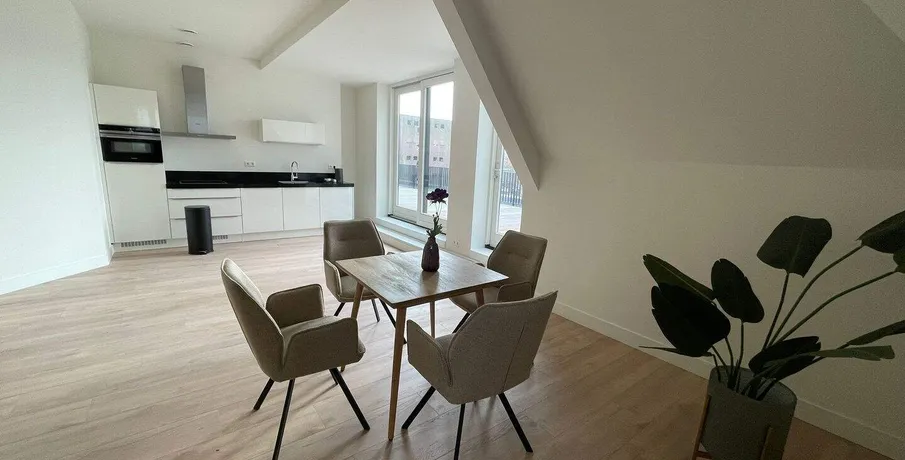 . . FURNISHED! LONG STAY APARTMENT. Nieuwe Haven 115 (ca. 75M2) Apartment K- TWO BEDROOM APARTMENT. RENTAL PRICE APARTMENT is 2000 euro exclusive G/E/W/I. Layout. Living area. A comfortable sitting and dining area. The style of the living area may vary slightly from one unit to another. The living area includes a sofa bed, TV, dining table with chairs, curtains etc etc.. Kitchen. the kitchen is fully equipped including a dishwasher, fridge freezer, electric cooker, combi microwave and oven, coffee machine and kettle, in addition to pots and pans, plates, glasses and cutlery.. Washer and dryer. There is a washing machine/dryer combination in this apartment. Smoking. all apartments are non-smoking. Smoking is only allowed in the allocated locations.. Pets. Pets are not allowed.. Details:. - central location. - near train station. - maximum 2 persons. - with 2-bedrooms. - deposit 2 months. - available per the 1st of December 2025.