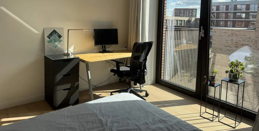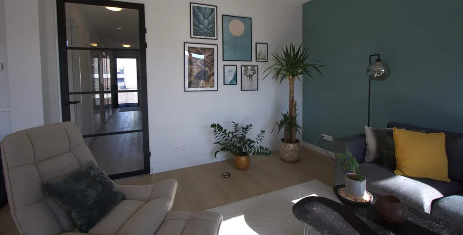 . Modern én duurzaam wonen in Utrecht! Gelegen in een volledig nieuwe woonwijk vindt u dit gemeubileerd 3-kamer appartement op de derde verdieping, met twee slaapkamers, een balkon en parkeergarage.. De woning is volledig gasloos, voorzien van een warmtepomp en HR++ glas. Instapklaar voor een starter, koppel, of twee woningdelers.. De maakt deel uit van het nieuwbouwproject 'De Nieuwe Defensie', waar de groene binnentuinen een knusse woonomgeving creëren.. In de direct omgeving vindt u hippe horecazaken zoals Café Kanaalzicht, Cupp en De Klub. Ook zijn er scholen, sportvoorzieningen en supermarkten. Het appartement is gesitueerd op fietsafstand van het bruisende centrum van Utrecht.. Het nabij gelegen Park Transwijk biedt wandelmogelijkheden, als wel een locatie waar regelmatig evenementen in de buitenlucht georganiseerd worden.. Op 2 minuten lopen bevindt zich een bushalte welke u naar Centraal Station brengt, ook met de fiets kunt u binnen 10 minuten in de trein zitten. Vanaf het appartement zijn de A2 en A12 zeer goed bereikbaar.. INDELING. Begane Grond:. Bij binnenkomst via de hal heeft u toegang tot alle vertrekken in het huis. De open woonkamer met keuken is huiselijk ingericht met een hoekbank, zitstoel en TV. De moderne keuken beschikt over de gewenste inbouwapparatuur. Er is een inductiefornuis met afzuigkap, oven magnetron combinatie, koel-vriescombinatie, vaatwasser en ruim voldoende kastruimte. De schuifpui in de keuken biedt toegang tot het balkon.. De eerste slaapkamer is ingericht met een tweepersoons boxspring en een ruime kledingkast. In de tweede slaapkamer staan een tweepersoonsbed, kast en bureau met bureaustoel. De badkamer is uitgerust met een ruime inloopdouche, een dubbele wastafel met spiegel en een handdoekradiator. Het toilet met fontein is separaat.. Ook is er een wasruimte met wasmachine en droger en voldoende ruimte voor overige opslag.. Kelder:. In de kelder vindt u de beveiligde parkeergarage, waarvan één parkeerplek tot het appartement behoort en een berging van 9 m2 voor opslag. Daarnaast is er een beveiligde fietsenstalling.. Bijzonderheden:. * Mogelijkheid tot het huren van een extra parkeerplaats (+- € 150,- p.m.);. * Separate berging;. * Energielabel: A++ (Volledig gasloos en voorzien van een warmtepomp en HR++ glas);. * GEEN huisdieren toegestaan.. Gemeubileerde woning. Beschikbaar per 24 september 2025, voor 12 maanden (Contract model C). Huurprijs: € 2.700,-, exclusief G/W/L..