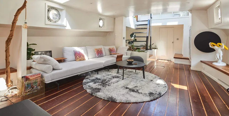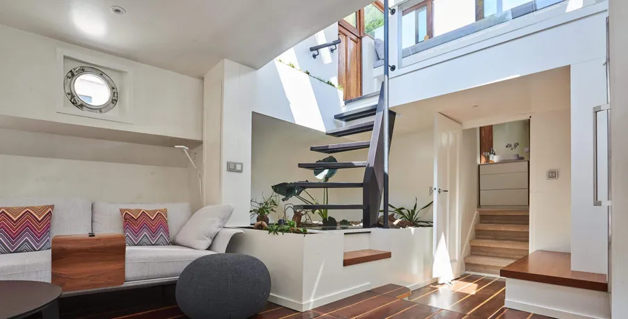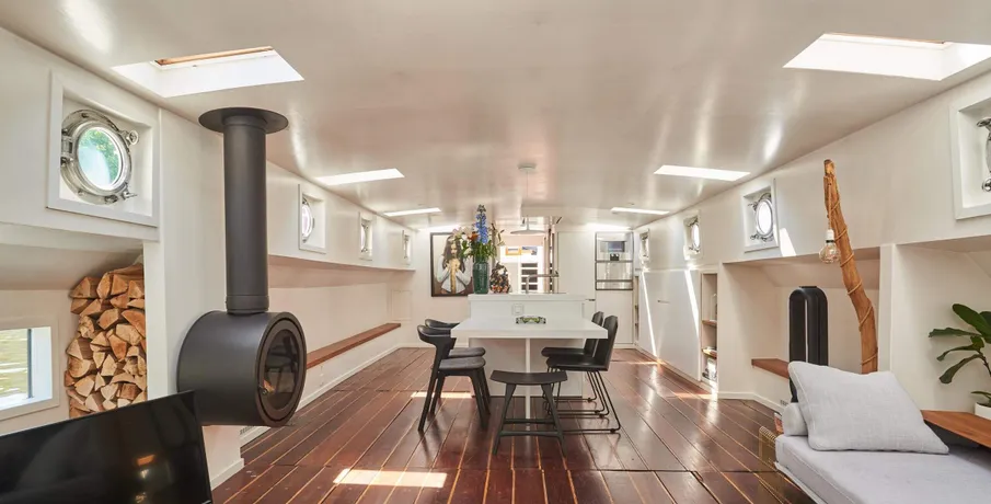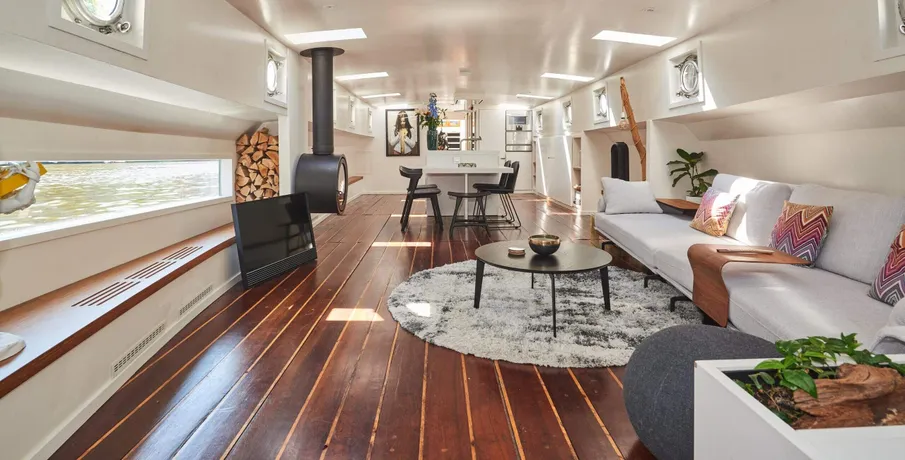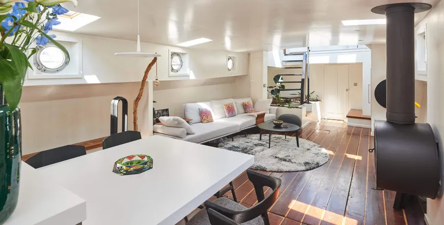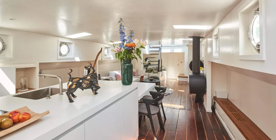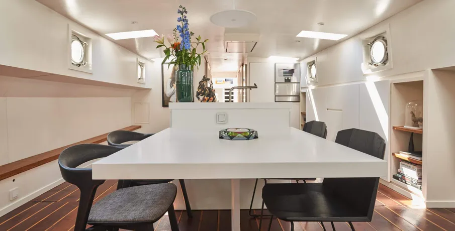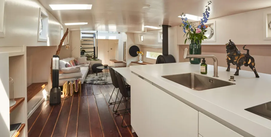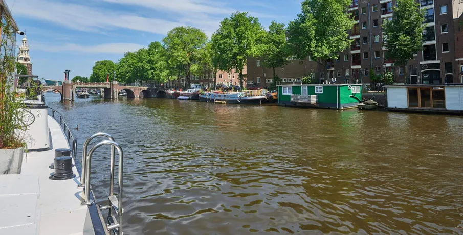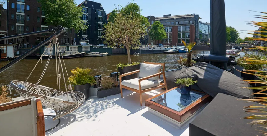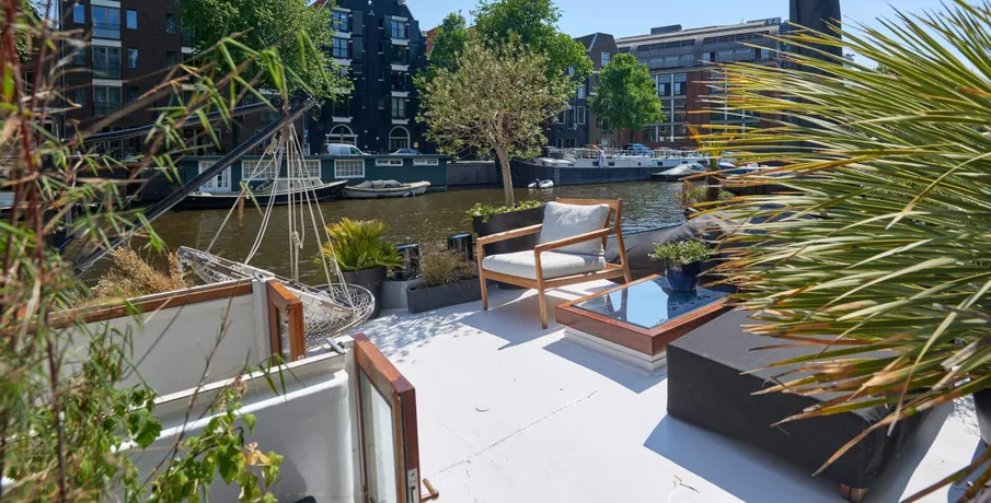 Midden in het historische hart van Amsterdam ligt deze uitzonderlijk luxe afgewerkte woonboot wat beschikt over 3 slaapkamers. Een unieke kans om te wonen op één van de mooiste grachten van de stad, omringd door rust, water en alle denkbare voorzieningen.. Omgeving:. De woonboot ligt aan de sfeervolle : een rustige en karakteristieke gracht tussen de bruisende Nieuwmarkt en de iconische Montelbaanstoren. Hier ervaar je de ideale balans tussen ontspanning en stedelijke dynamiek. Op loopafstand bevinden zich supermarkten, speciaalzaken, cafés, restaurants, galeries en culturele hotspots. Met het metrostation en Amsterdam Centraal om de hoek ben je binnen enkele minuten overal in de stad — en daarbuiten.. Indeling:. Deze moderne woonboot is afgewerkt op het hoogste niveau en voorzien van state-of-the-art technologie. Grote ramen, een open indeling en het designinterieur creëren een lichte en stijlvolle leefomgeving met prachtig uitzicht over het water.. De ruime woonkamer is ingericht met hoogwaardige designmeubels. De houtkachel geeft direct een cozy sfeer in de woonkamer. Met de geïntegreerde Philips Hue-verlichting en het iPad Home Control Center bedien je eenvoudig de verlichting, verwarming en muziek in het hele huis.. De luxe keuken is volledig uitgerust met Gaggenau-apparatuur, waaronder een flex-inductiekookplaat, combi-stoomoven, wijnklimaatkast en koffiemachine. Perfect voor de kookliefhebber.. De master bedroom is voorzien van een royaal tweepersoonsbed (180×210 cm). De en suite badkamer beschikt over een regendouche, dubbele wastafel, toilet en een ligbad.. De tweede slaapkamer beschikt over een queen size bed en kastruimte. De tweede badkamer beschikt over een inloopdouche, wastafel en toilet.. De derde slaapkamer beschikt over een queen size bed.. Upstairs Lounge. De bovenlounge biedt een uniek panoramisch uitzicht over de gracht. Een sfeervolle plek om te ontspannen, met comfortabele zitplekken voor vier personen.. Buitenruimte. Op het zonnige terras vind je ligstoelen, een multifunctioneel sunbed en een hangmat.. Gemeubileerde woning. Beschikbaar per 2 januari voor 3 maanden (Contract model C). Huurprijs: €3500,00 excl. g/w/l.. Algemene voorwaarden