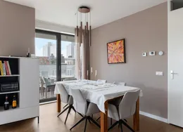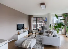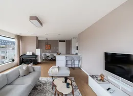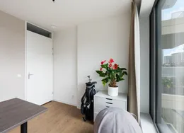 . Beschrijving. Te huur: Zeer ruim en luxe gemeubileerd appartement op de tweede verdieping aan de Roo Valkstraat, in Rotterdam. Het appartement heeft een woonoppervlakte van m2, is gelegen direct onder het houten dak en beschikt over een terras.. Buurt en omgeving. Het appartement bevindt zich in de Agniesebuurt op loopafstand van het centrum van Rotterdam, loopafstand van supermarkten, scholen CS en andere voorzieningen. Tevens is de eerste uitvalsweg in de nabije omgeving op slechts 1 minuut rijden.. In de Roo Valkstraat is het betaald parkeren, met mogelijkheid voor een parkeervergunning.. Het 3-kamer appartement is gelegen op de 2e verdieping. De entree is op de begane grond. In het gedeelde trappenhuis bevindt zich de fietsenberging. Entree appartment: enorme hal met toegang tot alle vertrekken. Aan de achterzijde is een ruime slaapkamer met balkon, zeer ruime badkamer met dubbele wastafels, ligbad en doucheruimte. Wasruimte met opstelling CV en wasmachine en droger, apart toilet. De 2e slaapkamer is bijzonder ruim en heeft teven toegang tot een terras aan de achterzijde. Living aan de voorzijde met toegang tot de half open keuken voorzien van alle benodigde apparatuur.. Zoekt u een ruime en luxe gemeubileerd appartement in Rotterdam? Dan is dit appartement aan de Roo Valkstraat zeker een bezichtiging waard!.