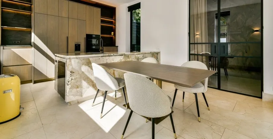 . Beschrijving. Deze prachtig afgewerkte en volledig gemeubileerde dubbele benedenwoning in Amsterdam Oud-West is een perfecte combinatie van functionaliteit en luxe. Ontworpen door architect Marco van Veldhuizen, biedt de woning de mogelijkheid om (deels) als bedrijfsruimte te worden gebruikt. Met een woonoppervlakte van ca. 103 m², beschikt de woning over een ruime woonkamer met open keuken, luxe apparatuur,....