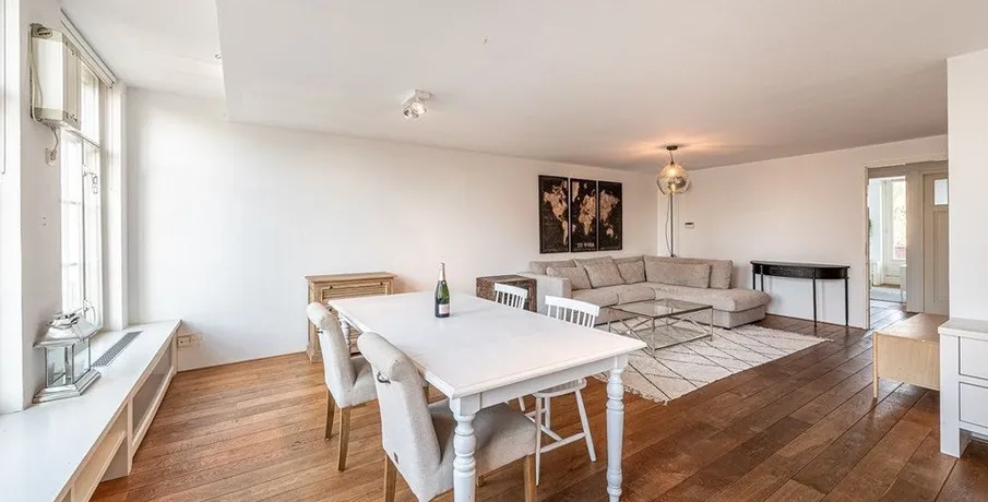 . Beschrijving. Uniek wonen in de Jordaan – ruim 133m2 met zonnig terras (35m2) aan de grachtWonen op topniveau in hartje Amsterdam? Dit riante en volledig gemeubileerde 4-kamerappartement van 133 m², verdeeld over de breedte van maar liefst twee panden, biedt alles wat je zoekt: ruimte, comfort en een ongeëvenaarde ligging in de geliefde Jordaan. Met drie slaapkamers, een zonnig dakterras van 35 m² en panoram....