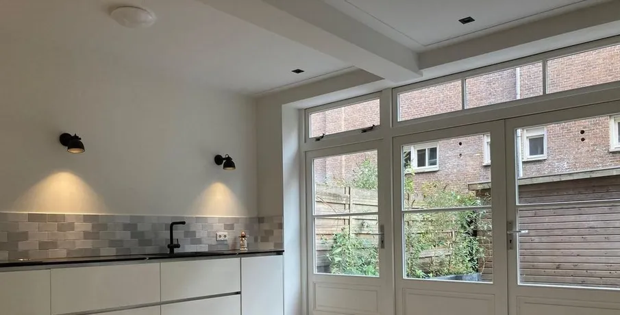 . Beschrijving. Schitterend gerenoveerd benedenhuis van ca. 110 m² met verzorgde zonnige tuin van ca. 50 m² in een rustige straat gelegen aan de rand van de Jordaan met prachtig uitzicht over het water. Ruime woonkamer op de begane grond met veel inval van daglicht. Luxe moderne open keuken met inbouwapparatuur aan de tuinzijde. De woning is met hoogwaardige en smaakvolle materialen verbouwd. Openslaande deure....