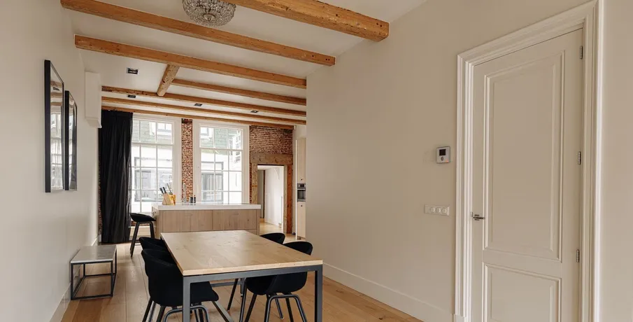 Unique living in the heart of Amsterdam – national monument dating back to 1624. Live in a place where more than four centuries of history, luxury and vibrant city life come together. This exceptional and fully furnished apartment of 133.9 m², located in a beautiful national monument from 1624, offers a rare combination of space, character and an unparalleled location.. LAYOUT. You enter this iconic residence via the representative entrance on the first floor. The spacious living room immediately impresses with a ceiling height of approximately 2.97 metres and exudes atmosphere and authenticity thanks to carefully preserved classical details, exposed wooden beams and a high-quality finish. Modern recessed lighting and large windows provide pleasant natural light and create a warm, luxurious ambiance.. At the rear of the apartment you will find the high-end open-plan kitchen with a stylish cooking island, equipped with modern built-in appliances and generous work and storage space. An inviting area where cooking and socialising naturally come together. From the kitchen, a hallway leads to a separate toilet and additional storage space.. Via the hallway towards the rear section of the property, you reach the spacious bathroom, fitted with a bathtub, washbasin, toilet and practical built-in storage. An internal staircase leads to the sleeping quarters.. The apartment features three generous bedrooms, spread over multiple levels and located on the ground floor, as well as the second and third floors of the rear building. All bedrooms are quietly positioned at the rear and are characterised by an idyllic, serene atmosphere. In addition, there is a separate laundry room, completing the overall living comfort.. LOCATION/ ACCESSIBILITY. The location is truly unrivalled. The property is situated directly opposite the iconic W Hotel, right next to the Royal Palace on Dam Square, with amenities such as Albert Heijn XL within walking distance. Here you are living quite literally in the beating heart of Amsterdam, where culture, history, high-end dining, shopping and all imaginable facilities are just a few steps from your front door.. The immediate surroundings offer an exceptional blend of monumental grandeur and urban vibrancy. From the charming ‘Negen Straatjes’ to the lively Kalverstraat and Nieuwendijk, everything is within easy reach. Amsterdam Central Station is a short bike ride away and provides excellent national and international train connections. In addition, several tram and metro lines in the vicinity ensure fast and convenient connections throughout the city.. The property is also easily accessible by car; via multiple arterial roads, the A10 ring road can be reached within minutes. This outstanding location makes the apartment more than just a place to live: it is a home with a story — atmospheric, characterful and exclusive, offering a unique opportunity for those seeking exceptional living in one of Amsterdam’s most prestigious locations.. SURFACE. Living area: 133,90 m². RENTAL CONDITIONS. - Rental price: € 4,000 per month, excluding gas, water and electricity. - Service charges: not applicable. - Security deposit: equivalent to two months’ rent. - Rental period: indefinite. - Start date: by mutual agreement (available immediately). - Utilities: rent is exclusive of service charges and gas, water and electricity. - Furnishing: rental price includes full furnishing. - Income requirement: minimum net income of 2.5 times the monthly rent. RENTAL AGREEMENT AND OTHER CONDITIONS. The standard ROZ model with additional provisions will be used as a rental agreement.. This information is entirely free of obligation and only implies an invitation to make a bid. An agreement can only be concluded after explicit and written approval from our client.. DISCLAIMER. All specified sizes and surfaces are indicative. The usable area has been calculated in accordance with the NEN2580 standard established by the industry. The surface may therefore deviate from comparable properties and/or old references. This is mainly due to this (new) calculation method. We do our utmost to calculate the correct surface area. However, we would like to emphasize that no rights can be derived from any difference between the stated and the actual size.. The tenant has his own duty to investigate all matters that are important to him or her. The broker is the owners’ advisor with regard to this property. We advise you to engage an expert (NVM) broker who guides you through the rental process. If you do not engage an expert representative, you consider yourself to be an expert enough by law to oversee all matters that are important. The NVM conditions apply.