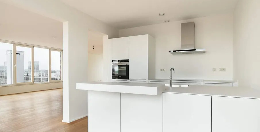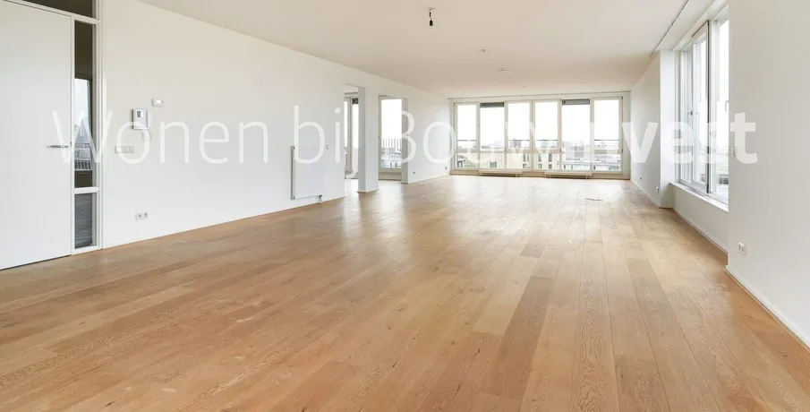Ruim en modern 4-kamerappartement van 221 m², gelegen op de 7e verdieping in een luxe wooncomplex. Het appartement heeft 3 slaapkamers en een loggia aangrenzend aan de slaapkamer. Daarnaast is er een dakterras, gelegen op het zuidwesten. Het appartement maakt deel uit van Het Kwartier en ligt in stadsdeel Zuid. Alle bewoners van Het Kwartier mogen gebruik maken van de luxe Wellness faciliteiten en de services van het Facility Point. Indeling Luxe afgesloten centrale entree op de begane grond met bellentableau, liftinstallatie, trappenhuis, automatische deuren en video intercominstallatie. Appartement: entree/hal met meterkast en toegang tot alle vertrekken. De zeer ruime woonkamer is voorzien van een open keuken. De keuken is voorzien van inbouwapparatuur: een combi-oven, inductiekookplaat, koelkast, vriezer en een vaatwasser. Naast de keuken is er nog een bergruimte. De ruime badkamer is voorzien van een groot ligbad, douche, dubbele wastafel, bidet, toilet en designradiator. De woning beschikt tevens over een apart toilet. In de onderbouw is een privé berging en parkeerplaats. Ligging De woning is rustig gelegen, maar alle gemakken van de stad zijn binnen handbereik. Via de Amstelveenseweg bent u zo op de Ring A10. Er zijn verschillende eetgelegenheden in Amsterdam Zuid op loop-/fietsafstand gelegen, alsmede het Vondelpark en het Olympisch Stadion. Bovendien bent u binnen ongeveer 7 minuten per fiets of auto op de Zuidas. Bij het Stadionplein, dat om de hoek ligt, vindt u alle dagelijkse voorzieningen, zoals de Albert Heijn. Daarnaast zijn er diverse (internationale) scholen nabij. Het complex Het complex is opgeleverd in 2004 en daarmee van alle comfort voorzien. Het complex is voorzien van zwembad, lounge, sauna en fitnessruimte waar u vrij gebruik van kunt maken. Verder biedt Het Kwartier haar bewoners een Facility Point waar men maandag t/m vrijdag van 7.00 tot 19.00 terecht kan voor vragen, het huren van een vergaderruimte of een gastenverblijf, brengen van stomerijgoed, etc. De woning wordt ongestoffeerd en ongemeubileerd opgeleverd. Wel is er al een vloer aanwezig in het appartement. Voor vragen of een bezichtiging kunt u contact opnemen met ons Facility Point aan de Laan der Hesperiden 114. Te bereiken via 020-7949494 of EMAIL Layout Luxury closed central entrance on the first floor with doorbells, elevator, staircase, automatic doors and video intercom system. Apartment: entrance / hallway with meter cupboard and access to all rooms. The very spacious living room has an open kitchen. The kitchen is equipped with appliances: a combi-oven, induction stove, fridge, freezer and a dishwasher. The spacious bathroom has a large bathtub, shower, double sink, bidet, toilet and design radiator. The apartment also has a separate toilet. In the basement is a private storage room and parking. Location The house is located in a quiet area, but all the conveniences of the city are within reach. Through the Amstelveenseweg you can reach the Ring A10. There are several restaurants in Amsterdam South within walking / biking distance, and the Vondelpark and the Olympic Stadium. Moreover, you are within about 7 minutes by bike or car on the Zuidas. At the Stadionplein, which lies around the corner, you will find all the daily amenities, such as the Albert Heijn. In addition, there are several (international) schools nearby. The complex The complex was completed in 2004 and therefore equipped with every comfort. The complex has a swimming pool, lounge, sauna and gym where you can make free use of. Furthermore, Het Kwartier offers its residents a Facility Point, open from Monday until Friday from 7AM to 7PM, where residents can go for questions, rent a meeting room or a guest room, bring laundry etc. The house will be delivered unfurnished. There is a floor in the apartment. For questions or a viewing please contact our Facility Point at Laan der Hesperiden 114. You can reach us at 020-79494 or EMAIL
