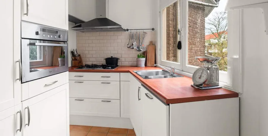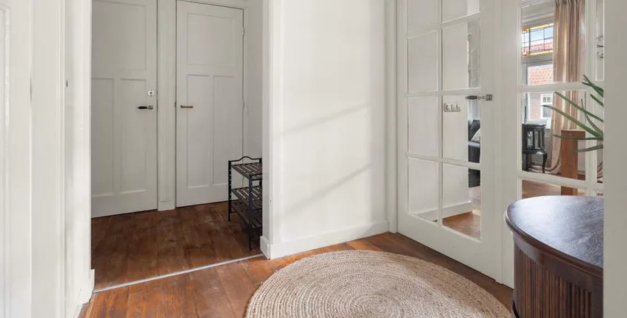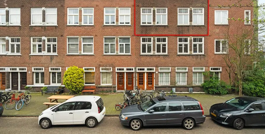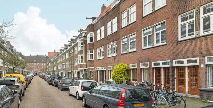. , Amsterdam/ Hoofddorpplein (ca. 113m2) € 3250,- Excl. G/W/E. Karakteristieke en netjes afgewerkte bovenwoning gelegen in de gewilde Hoofddorppleinbuurt van Amsterdam. De woning is gelegen op de tweede en derde verdieping en is voorzien van houten vloeren, originele glas-in-lood ramen en een stijlvolle inrichting.. De lichte L-vormige woonkamer heeft veel lichtinval door de vele ramen en maakt met een mooie schouw en sfeervolle eethoek de perfecte thuisbasis. De separate keuken is fris en modern en biedt alle benodigdheden waaronder een oven, gasfornuis, koelkast, vriezer en vaatwasmachine en met een geweldig uitzicht op de binnentuinen. Ook zijn de wasmachine en droger te vinden in de keuken.. Op dezelfde verdieping bevindt zich ook de derde slaapkamer welke toegang biedt tot het zonnige balkon. Deze slaapkamer beschikt over een eigen badkamer. De "master bedroom" bevindt zich op de derde verdieping samen met nog eens een extra slaapkamer. Deze kamer is met hoof plafond. De badkamer op deze verdieping is o.a. voorzien van een ligbad, separate douche en een dubbel wastafelmeubel.. Het appartement ligt in een rustige maar gezellige straat om de hoek van de Schinkel, in een gewilde buurt met toegang tot vele restaurants en cafés maar ook met voldoende mogelijkheden om even aan de drukte te ontsnappen in het dichtbij gelegen Vondelpark en het Amsterdamse bos. De omgeving biedt toegang tot de uitvalswegen zoals de Ring A10 maar ook tramlijn 2 en verschillende buslijnen zijn allemaal binnen enkele minuten bereikbaar..