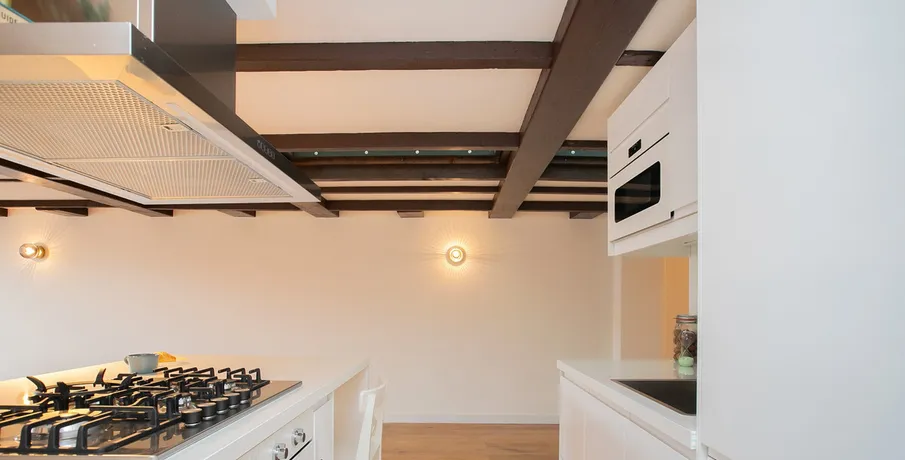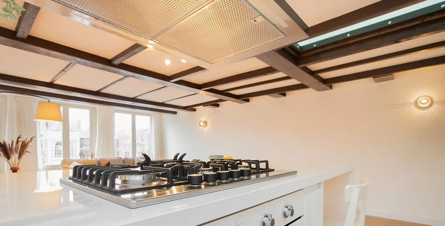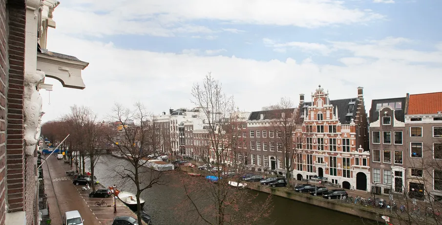 . Fantastic 3 bedroom penthouse apartment on the with a beautiful view of the canal in both the living room and master bedroom.. Both furnished or unfurnished available. This elegant 18th century building has marble floor and stucco at the entrance.. The apartment is newly renovated and has 3 bedrooms and is located on the top floor.. The athmosphere is a blend between modern style, luxury kitchen, spacious bathroom and the historical flavour of old, restored beams, orginal attic roof and beautiful wooden floor everywhere. It is located on the top 2 floors of the complex and has a beautiful view of the canal.. Layout:. Entry on the 3rd floor, the living room at the front with a great view over the canal.. The living room has an open and modern kitchen including a dishwasher, washing machine and refrigerator. Modern and separate toilet.. A large bedroom is located at the rear on this floor.. 4th and top floor,. Very spacious and light landing with space for play, study and / or workplace. Many windows and therefore good light.. At the front a beautiful bedroom with a view of the canal.. The 3rd bedroom at the rear.. The bathroom has a beautiful walk-in shower, wide sink and a toilet.. The apartment is largely furnished and is available immediately.. The rent is € 3500 per month and is excluding gas, water and electricity..