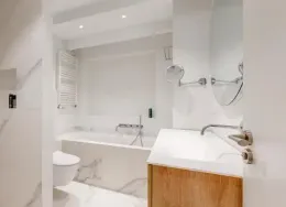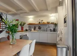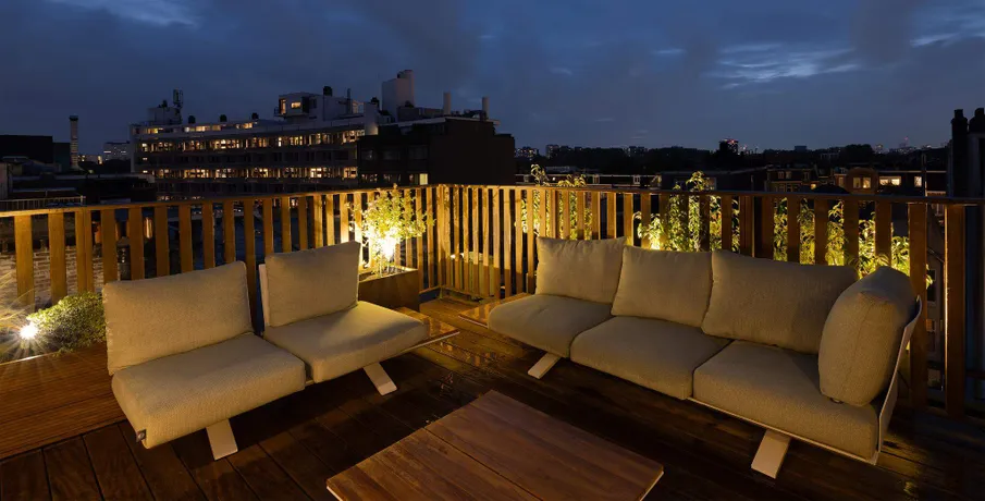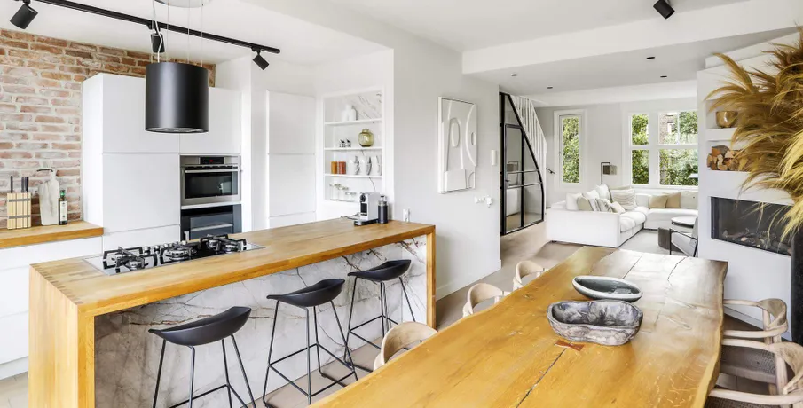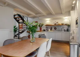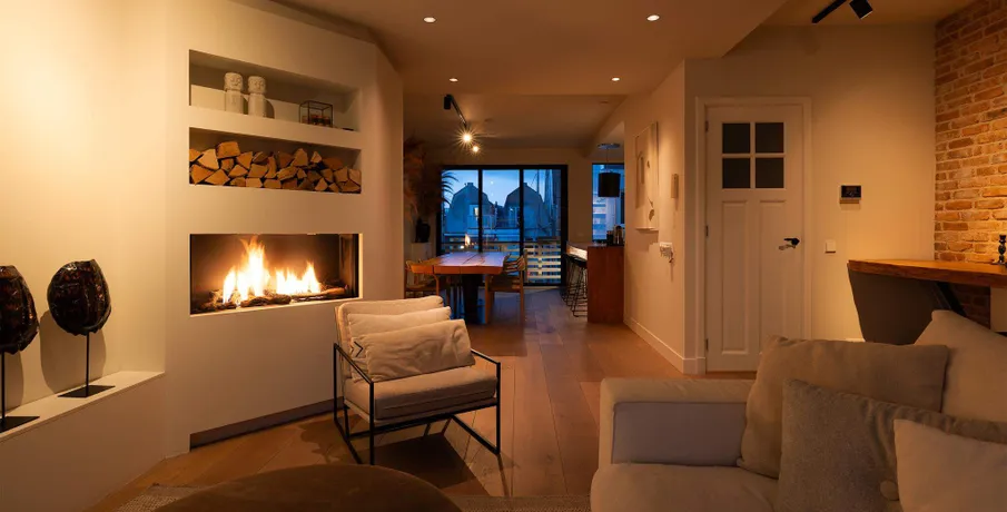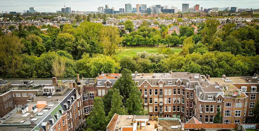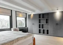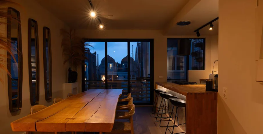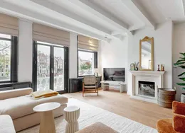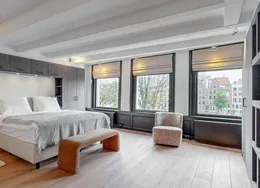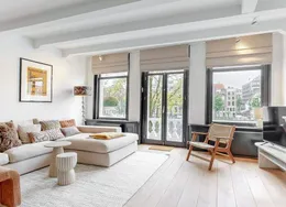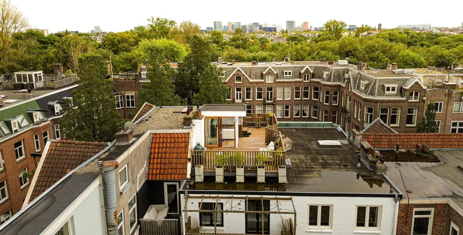 . Exclusive living directly next to the Vondelpark, featuring a spacious rooftop terrace with jacuzzi, two sunny balconies, and the convenience of a very generous storage unit and a private parking space in the underground garage – a true rarity at this prime location.. This luxurious 120 m² residence, situated on the quiet Zocherstraat, was fully renovated in 2021 and equipped with all modern amenities for optimal comfort.. The expansive private rooftop terrace of 39 m² offers extra privacy, with no direct neighbors, and is equipped with a jacuzzi and outdoor speakers. Additionally, built-in televisions have been installed by the beds, with careful attention to every detail.. The entrance to the residence is located on the second floor, and from here, a staircase leads to the third floor, where the spacious kitchen-living area is situated. This area features a tastefully designed kitchen with high-quality materials and an island, equipped with modern built-in appliances. The space also includes two gas fireplaces, one facing the kitchen and the other facing the sitting area.. The folding doors to the adjacent spacious terrace can be fully opened, creating a lovely indoor-outdoor flow. This floor also has a separate toilet.. Taking the stairs to the fourth floor, you’ll find three bedrooms. The two large bedrooms and a smaller bedroom all have built-in wardrobes. At the rear of the property, there is a spacious balcony, accessible from both rear bedrooms. The recently renovated bathroom is finished to a high standard, with a walk-in shower, bathtub, and double sink. High-quality materials have been used throughout.. The spacious rooftop terrace on the fifth floor is equipped with a jacuzzi and features wooden decking, which gives it a well-maintained look. The same wood is used throughout the terrace’s finish.. The property includes a very spacious storage unit/garage box and a private parking space in the underground garage. Furniture is available for purchase upon consultation.. Location:. The apartment is situated on a street adjacent to the Vondelpark in the popular Oud-West district, just around the corner from the Overtoom and Amstelveenseweg. Nearby, you’ll find Jan Pieter Heijestraat, with plenty of amenities such as cozy cafés, shops, restaurants, and sports facilities like David Lloyd. The A10 ring road is easily accessible, and there are plenty of public transport options nearby.. Details:. – Living area of 120 m² (according to NEN2580);. – Large kitchen-living area with kitchen island and two gas fireplaces;. – Three bedrooms with built-in wardrobes;. – Luxury bathroom with walk-in shower, bathtub, and double sink;. – Two spacious balconies and a large rooftop terrace with jacuzzi;. – Spacious storage unit of 25 m² and private parking space in the underground garage for sale;. – Furniture available for purchase upon consultation;. – Located on freehold land (no leasehold);. – HOA (VvE) fees are € 304.24 per month;. – Financially healthy and active Homeowners Association (HOA), professionally managed;. – Located on a quiet street near the Vondelpark, Overtoom, and Jan Pieter Heijestraat;. – Delivery in consultation.. Read more. Hide. DUTCH. ENGLISH.