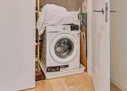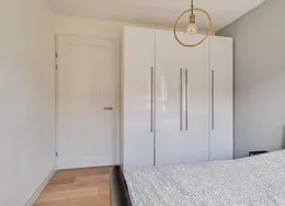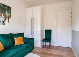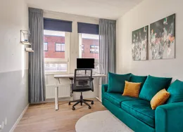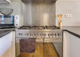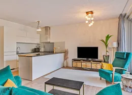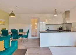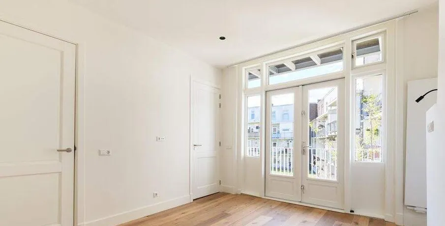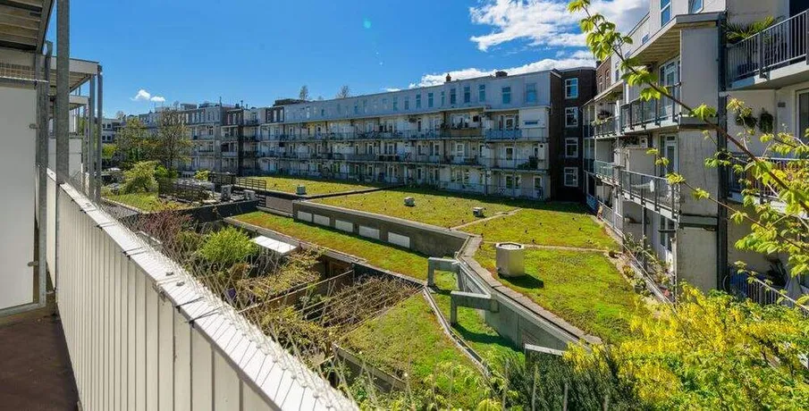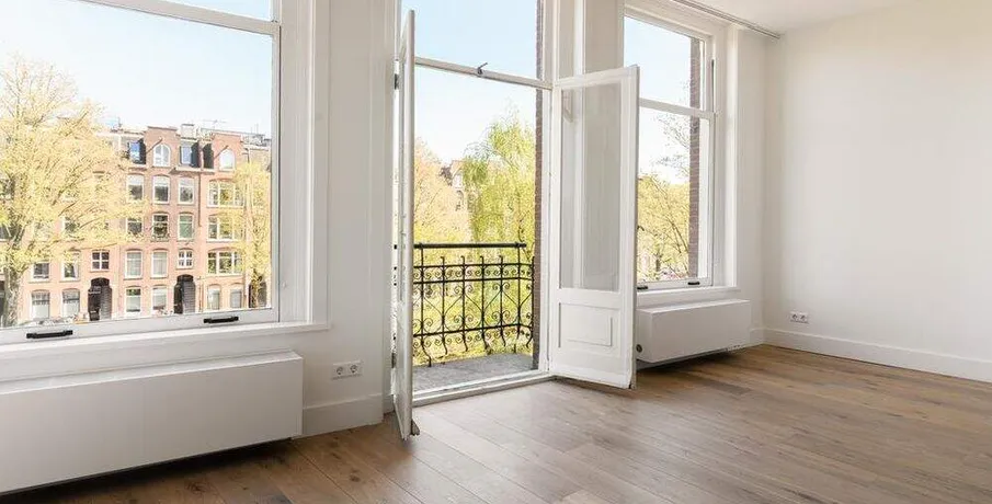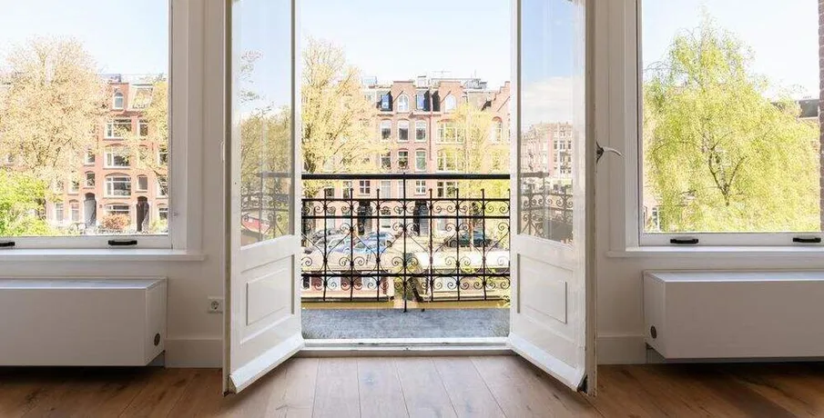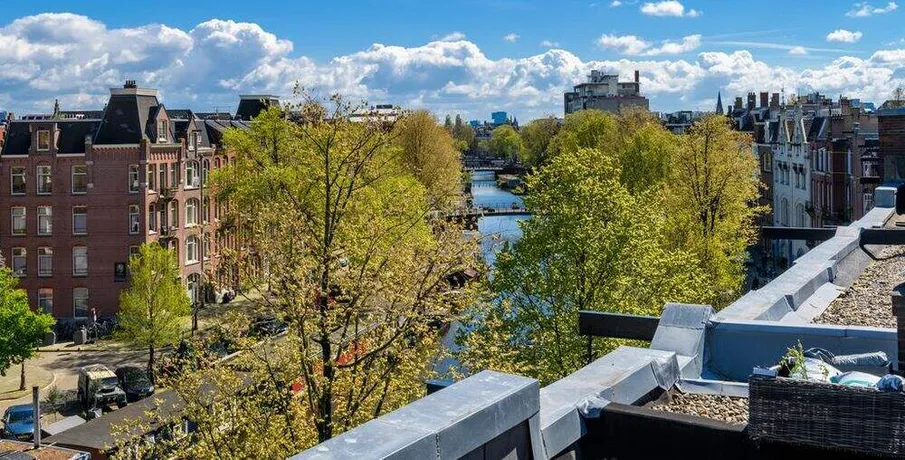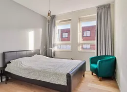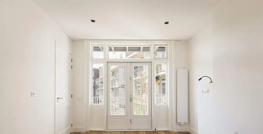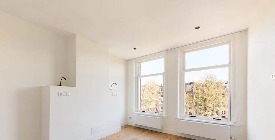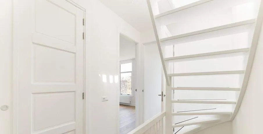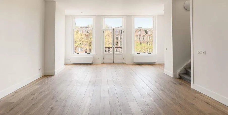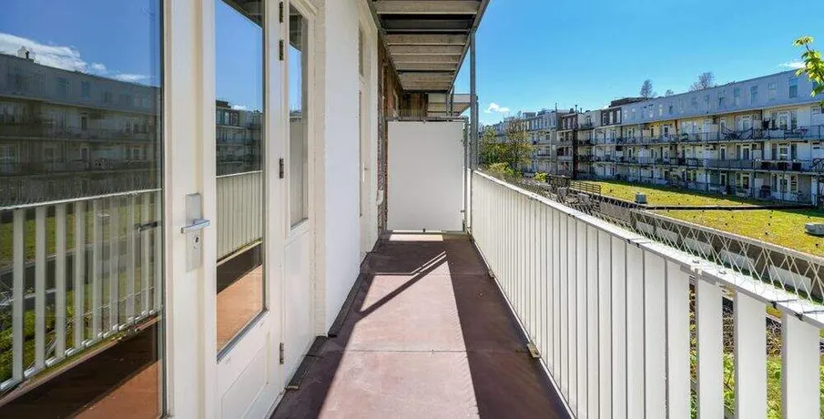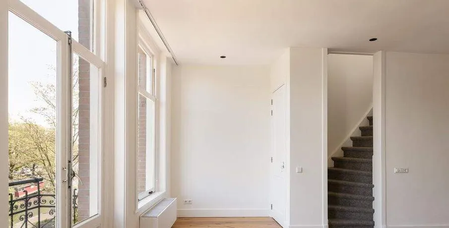 . Beschrijving. Dit riant, volledig gerenoveerde 3-slaapkamer appartement van 96 m² biedt een dakterras van 21 m² en twee balkons, en is ideaal voor huurders die willen genieten van het centrum met veel buitenruimte. Via het gemeenschappelijke trappenhuis op de tweede verdieping betreedt u de hal met een bergingskast, wasruimte en separaat toilet. De lichte woonkamer heeft openslaande deuren naar het Franse ba....