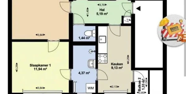 4 kamers appartement van 72 m2