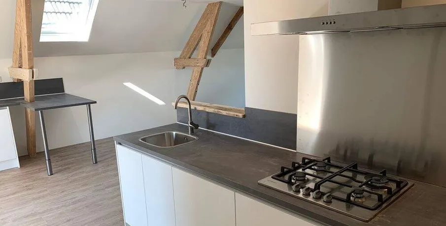 . Beschrijving. TE HUUR VANAF DECEMBER: PRACHTIG GROOT APPARTEMENT IN CENTRUM VAN BREDA!. Dit ruime appartement (125 m2) is gelegen op een top locatie nabij het gezellige centrum van Breda, tussen de horeca-hub “van Coothplein” en de "Breda PC-Hoofdstraat”, de Wilhelminastraat.. Het geheel gerenoveerde appartement met 3 slaapkamers (16 m2, 16 m2 en 10 m2) is gelegen op de 2e en 3de verdieping en is te bereiken met een moderne (rolstoel-) toegankelijke lift, vanuit de lift kom je direct in de living. Er is een video-deurintercom voor het verlenen van toegang vanuit het appartement.. Het appartement is voorzien van vloerverwarming, mechanische ventilatie, houtlook vloeren in het gehele appartementen en vitrage (optrek/gordijnen). De living met de open keuken (samen ca. 50 m²) is licht te noemen door de aanwezigheid van een mooie pui aan de voorzijde van het appartement. De woonkamer is verbonden met de open keuken, de keuken is geplaatst in een hoekopstelling en uitgevoerd in een lichte kleurstelling. Via de keuken heb je toegang tot het dakterras wat ruim 26 m2 groot is.. De keuken is voorzien van nieuwe inbouwapparatuur waaronder een vaatwasser, magnetron/oven, gaskookplaat met moderne afzuigkap. Het appartement heeft 2 badkamers die voorzien zijn van een douche, toilet, en wastafel, wastafelmeubel plus spiegelkast en extra radiator.. Een badkamer is bereikbaar vanuit de keuken/woonkamer en een badkamer is en-suite met een slaapkamer. Naast de badkamer is een aparte technische ruimte voor de eigen CV installatie plus eigen gas en elektra meters die voorzien is van aansluitingen voor wasmachine en droger.. Via de vaste trap krijg je toegang tot de 3e verdieping hier heeft u een ruime overloop met een inbouwkast. Op deze verdieping bevinden zich nog 2 slaapkamers.. Via ruime vaste trappen is er toegang tot de achter ingang met een achterterrein waar gelegenheid is tot gratis parkeren tot ongeveer eind 2025. Hierna worden parkeerplaatsen aangelegd en bestaat de mogelijkheid tot het huren van een 1 parkeerplaats (het appartement geeft ook recht tot het verkrijgen van een 1 parkeervergunning van de gemeente Breda).. Kenmerken appartement. - 125 m2 (2 verdiepingen, verbonden door trap).. - 3 slaapkamers (waarvan 1 klein, 16 m2, 16m2 en 10 m2).- (rolstoel toegankelijke) lift met directe toegang tot appartement.. - technische ruimte voor eigen CV installatie, eigen tussenmeter voor gas en elektra.. - mechanische ventilatie in geheel appartement.. - wasmachine en droger aansluiting in technische ruimte.. - 2 badkamers, beide met douche, toilet, wastafel met wastafelmeubel, spiegelkastje en extra radiator.. - zeer grote keuken (25 m2).. - keuken voorzien van gasfornuis, afzuigkap, magnetron/oven, vaatwasser, spoelbak met mengkraan, koelkast, vrieskast.. - woonkamer met vide (25 m2).. - 28 m2 buitenterras achterzijde (zonzijde) met kunststof terrasdelen (met uitzicht op kerktoren van Breda).. - vloerverwarming in het appartement.. - video deurintercom.. - halogeen inbouwspots woonkamer, keuken en slaapkamer.. - optrekgordijnen in slaapkamers voorzijde en voorzijde woonkamer, jaloezien in slaapkamers 3de verdieping.. - houtlook vloeren in het gehele appartement.. - trapopgang vanuit tuin, gelegenheid tot parkeren in tuin (tot eind 2025, daarna aanleg parkeerplaats en mogelijkheid tot huur van 1 parkeerplaats).. Geïnteresseerd geraakt? Neem contact met ons op via de mail om te kijken naar de mogelijkheden voor dit prachtige appartement!.