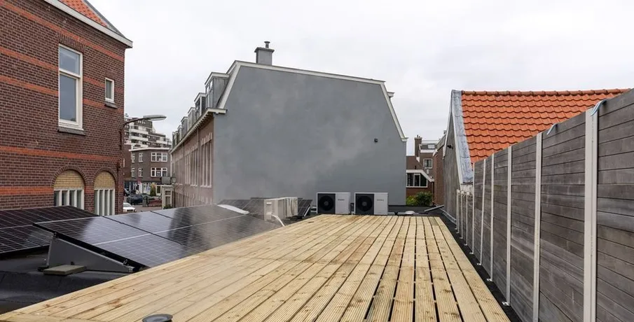 . Beschrijving. Wonen op loopafstand van het strand en de boulevard? Deze lichte en ruime 5-kamer dubbele bovenwoning op Scheveningen biedt een unieke kans voor wie houdt van de bruisende kust en het stadsleven. Met veel karakter en moderne voorzieningen is deze woning perfect voor gezinnen, stellen of professionals die willen genieten van alles wat Scheveningen te bieden heeft.. (English text see below). Indeling:. Entree op de begane grond, vestibule met meterkast.. Binnentrap naar de 1e etage, overloop (ca. 3,42x1,29) met vaste kast.. Lichte woonkamer (ca. 8,02x3,75). Werkkamer (ca. 2,20x2,29).. Slaapkamer (ca. 4,80x3,43) aan de achterzijde van de woning.. Overloop (ca. 1,23x1,97 met vaste kast en opstelplaats voor de C.V. ketel.. Badkamer (ca. 1,78x1,97) met douche, wastafel en toilet.. Keuken (ca. 2,82x1,97) met net keukenblok.. Vanuit de keuken is het Terras (ca. 11,00x3,30)(noordoosten) bereikbaar.. Binnentrap naar de 2e etage, ruime overloop.. Voorkamer (ca. 4,44x4,46).. Keuken (ca. 3,04x3,38) met net keukenblok.. Badkamer (ca. 2,70x1,81) voorzien van douche, wastafel, toilet en wasmachineaansluiting.. Achterkamer (ca. 2,92x4,22).. Bijzonderheden:. Woonoppervlakte: ca. 127 m². Plafondhoogte: ca. 2,52 / 3,49 m. Verwarming/warm water: C.V. middels Intergas combiketel. Elektra: 8 groepen met 2x A.L.S. Kozijnen: kunststof/houten kozijnen met dubbele beglazing. Bouwperiode: 1909. Beschikbaar: per direct. Huurprijs: € 3.500,- per maand exclusief elektra en water. Waarborgsom 1 maand huur. Living within walking distance of the beach and boulevard? This bright and spacious 5-room double upper house in Scheveningen offers a unique opportunity for those who love the vibrant coastal and city life. With plenty of character and modern amenities, this property is perfect for families, couples, or professionals looking to enjoy everything Scheveningen has to offer.. Layout: Entrance on the ground floor, vestibule with meter cupboard. Indoor stairs to the 1st floor, hallway (approx. 3.42x1.29) with built-in cupboard.. Bright living room (approx. 8.02x3.75). Study room (approx. 2.20x2.29). Bedroom (approx. 4.80x3.43) at the rear of the house.. Hallway (approx. 1.23x1.97) with built-in cupboard and space for the central heating boiler.. Bathroom (approx. 1.78x1.97) with shower, sink, and toilet. Kitchen (approx. 2.82x1.97) with a neat kitchen unit. The terrace (approx. 11.00x3.30) (northeast-facing) is accessible from the kitchen.. Indoor stairs to the 2nd floor, spacious landing. Front room (approx. 4.44x4.46). Kitchen (approx. 3.04x3.38) with a neat kitchen unit. Bathroom (approx. 2.70x1.81) with shower, sink, toilet, and washing machine connection. Back room (approx. 2.92x4.22).. Particulars: Living area: approx. 127 m². Ceiling height: approx. 2.52 / 3.49 m. Heating/hot water: central heating via Intergas combi boiler. Electricity: 8 groups with 2x circuit breakers. Frames: plastic/wooden frames with double glazing. Construction period: 1909. Available: immediately. Rental price: €3,500 per month, excluding electricity and water. Security deposit: 1 month's rent.