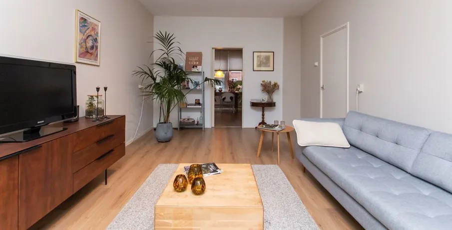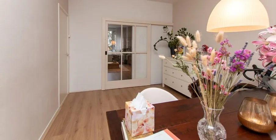 . Beschrijving. Wonen in de dynamiek van de stadsdriehoek in een uitstekend onderhouden 4- kamer appartement, gelegen op de tweede verdieping van een goed onderhouden complex.. Het appartement is ontworpen door Marlous van Wijnen een binnenhuis architect die al vele mooie projecten heeft afgeleverd. Het appartement heeft een luxe keuken, badkamer, separaat toilet, twee slaapkamers, ruime woonkamer en werkkamer en twee balkons. De luxe en eigentijdse uitstraling welke het appartement biedt geeft je het juiste gevoel van de dynamiek die de buurt je geeft. De markthal en NS station Blaak is op twee minuten lopen en in de wijk zijn tal van leuke restaurants, wijnbars en boetiekjes te vinden. Of te wel, wonen op een toplocatie.. Bij binnenkomst treft u de centrale hal aan in het appartement, vanwaar uit alle vertrekken bereikbaar zijn. De ruime woonkamer en suite met aan de achterzijde de eetkamer en voorzijde de woonkamer. Aan de straat zijde is een kleine slaapkamer met vaste kast gelegen. Aan de achterzijde is de ruime tweede slaapkamer met inloop kledingkast.. De ruime keuken is voorzien van inductie kookplaat, afzuigschouw, vaatwasser en koelkast, ook is hier de aansluiting van de wasmachine.. De badkamer is voorzien van inloopdouche, wastafelmeubel en mooie wand en vloertegels, het toilet is separaat gelegen en voorzien van hangcloset.. Er zijn twee balkons aanwezig.. Het appartement is uitstekend afgewerkt met een mooie vloer en strakke wanden en plafonds.. Bijzonderheden:. -Ruim appartement. -Nette keuken en badkamer. -Top ligging. -Huren ? vraag naar de voorwaarden..