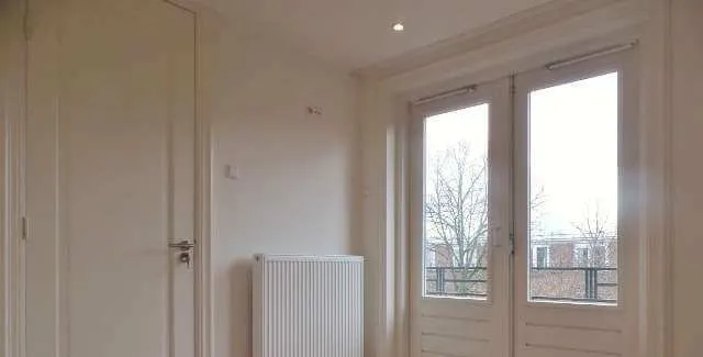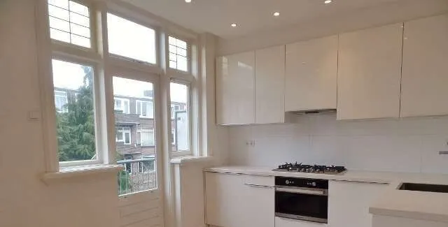 DescriptionPlease note: Sharing a house is only permitted for a maximum of two households.. What a wonderfully modern and beautifully finished apartment with no less than 3 spacious bedrooms, 2 bathrooms, 2 separate toilets, 2 balconies and a small study room!. Very centrally located in the green district of Blijdorp with public transport, roads, supermarket and in the immediate vicinity of the beautiful Vroesenpark.. A spacious 4-room apartment on the 2nd and half 3rd floor that has recently been completely renovated.. The house has a beautiful living room with open kitchen with various built-in appliances. Furthermore, the apartment has three spacious bedrooms, two bathrooms with walk-in shower, large sink and a storage cupboard with washing machine and dryer connections.. Layout:. Ground floor:. Main entrance, stairs to the second floor.. 2nd floor:. Hall with meter cupboard and separate toilet. Access to all rooms on the 2nd floor. Two bedrooms at the front of the building. One of these bedrooms has an en-suite bathroom with a walk-in shower and double washbasin. Both sleeping rooms have plenty of cupboard space. The living room is quietly located at the rear of the building. Open kitchen with 5 burner gas stove, extractor hood, combi oven / microwave, dishwasher, sink, fridge and freezer. The kitchen provides access through French doors to a balcony at the rear of the house.. 3th floor. Bedroom with bathroom en-suite, equipped with two large sinks and a walk-in shower. The bathroom can also be reached from the landing. You will also find a small room on this floor that can serve as a walk-in closet or baby room or small study area. The bedroom and study offer access through French doors to a spacious balcony. The bedroom also has a lot of closet space on this floor.. Particularities:. Heating and hot water through combi boiler.. All rooms in the apartment have wooden floors and recessed spotlights..