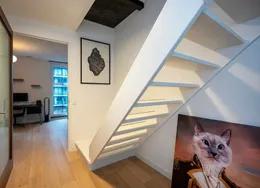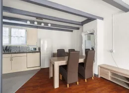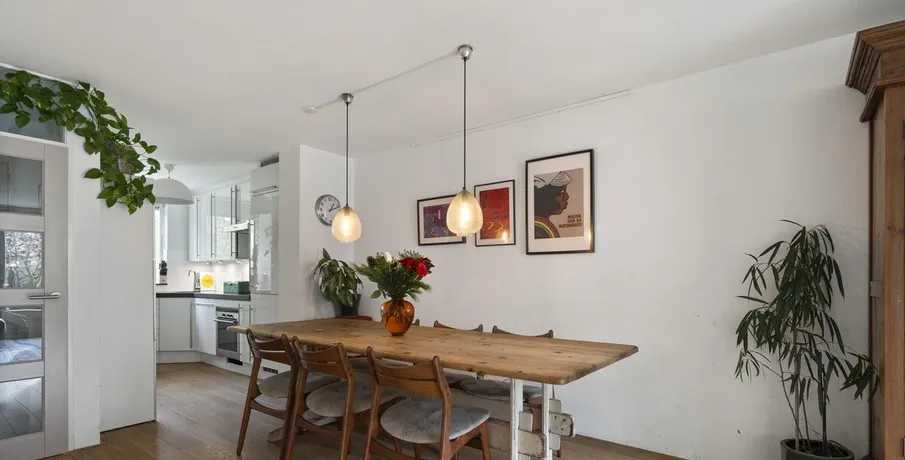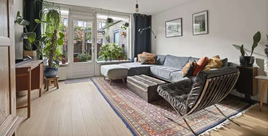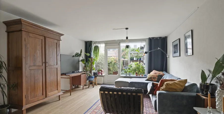 . , Amsterdam/ Noord (ca. 116m2) € 2450,- Excl. G/W/E. In een geliefde woonwijk bevindt zich deze ruime, goed onderhouden en volledig gemeubileerde eengezinswoning met een zonnige en onderhoudsvriendelijke tuin op het zuiden. De woning ligt op korte fietsafstand van recreatiegebied ’t Twiske en op circa 15 minuten fietsen van de pont naar het centrum van Amsterdam.. Entree met hal, toilet, meterkast en trapopgang. Ruime tuingerichte woonkamer en een open keuken aan de voorzijde. Zonnige tuin op het zuiden met achterom en een stenen berging. De keuken is o.a. voorzien van ceramische kookplaat, combi oven/ magnetron, vaatwasser en voldoende bergruimte.. Op de eerste verdieping is een overloop met toegang tot een ruime (ouder)slaapkamer aan de straatzijde en een nette badkamer voorzien van een inloop- regendouche, tweede toilet, dubbele wastafel en een bergkast. Tevens bevindt zich hier een technische ruimte met cv-ketel, wasmachine en droger. Aan de achterzijde zijn twee extra slaapkamers gesitueerd.. Op de tweede verdieping is in 2007 een ruime opbouw gerealiseerd, bestaande uit een ruime voorzolder en voldoende bergruimte. Op het dak liggen 14 zonnepanelen (2014), waarmee een aanzienlijk deel van het energieverbruik wordt gecompenseerd.. De woning is gelegen in nabijheid van diverse voorzieningen zoals scholen, winkels, openbaar vervoer en uitvalswegen. Er zijn verschillende busverbindingen naar Amsterdam Sloterdijk (Bus 103), Purmerend, Zaandam en Station Amsterdam Noord (Bus 111).. De Dekamarkt ligt op loopafstand. Op korte fietsafstand bevinden zich bovendien winkelcentrum Molenwijk, met diverse winkels zoals een bakker, slager, kaaswinkel, Etos, Kruidvat en Albert Heijn en het gezellige Landsmeer met zijn dorpskern en gevarieerd winkelaanbod. Ook de NDSM-werf, met tal van restaurants en uitgaansgelegenheden, is gemakkelijk per fiets bereikbaar. Daarnaast ligt de woning dicht bij open vaarwater, waardoor u de mogelijkheid heeft een boot aan te leggen en via Waterland richting de Amsterdamse grachten te varen..