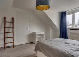 . Beschrijving. Moderne en volledig gemeubileerde eengezinswoning op ideale locatie in Hoofddorp. Verzorgde, moderne eengezinswoning met een woonoppervlakte van ca. 170 m², verdeeld over drie verdiepingen. De woning beschikt over 3 (!) ruime slaapkamers, 2 badkamers en een royale woonkamer met open keuken. Aan buitenruimte geen gebrek: de woning beschikt over zowel een zonnige achtertuin als een dakterras, beide gelegen op het noordwesten. Daarnaast is er een eigen oprit/parkeerplaats aanwezig.. Locatie. Gelegen in een rustige en goed bereikbare woonwijk in Hoofddorp, met alle voorzieningen binnen handbereik. Supermarkten, winkels en overige faciliteiten bevinden zich in de buurt. De Optimist International School ligt op loopafstand.. De woning is uitstekend bereikbaar met zowel de auto als het openbaar vervoer. In de directe omgeving vindt u uitvalswegen richting de A4, A5 en A9, wat zorgt voor een snelle verbinding met Amsterdam, Haarlem en luchthaven Schiphol. Het NS-station Hoofddorp biedt een directe treinverbinding naar Amsterdam Zuid/WTC en overige bestemmingen. Ook diverse busverbindingen zijn in de nabije omgeving aanwezig.. Indeling. Begane grond: entree met toegang tot hal/bijkeuken, een ruime kamer naast de voordeur (momenteel in gebruik als berging, maar ook geschikt als extra slaapkamer of werkkamer), eerste slaapkamer met ensuite badkamer voorzien van ligbad. Via de slaapkamer is de achtertuin met berging en achterom bereikbaar.. Eerste verdieping: royale woonkamer met open keuken, volledig voorzien van inbouwapparatuur. Vanuit de woonkamer heeft u vrij uitzicht over groen aan de voorzijde en zicht op de tuin aan de achterzijde. Let op: het keukenblok zal nog worden aangepast; er wordt een nieuw onderblad geplaatst waarin de oven netjes wordt geïntegreerd. Daarnaast wordt er een volledig nieuwe vaatwasser geplaatst.. Tweede verdieping: ruime tweede slaapkamer met ensuite badkamer en toegang tot het dakterras.. Bijzonderheden. Woonoppervlakte ca. 170 m². 3 slaapkamers. 2 badkamers. Tuin én dakterras op het noordwesten. Volledig gemeubileerd. Verdeeld over drie woonlagen. Eigen parkeerplaats. Beschikbaar per 1 augustus 2025 (Model C). Financieel. Huurprijs: €2.950,- p/m (incl. meubilering/inventaris, excl. nutsvoorzieningen). Waarborgsom: 2 maanden huur. Bij interesse en/of voor meer informatie kan er vrijblijvend contact worden opgenomen met ons kantoor in Amstelveen via:. T: +31(0)20 503 65 60. E: EMAIL. W: . Onze voorwaarden zijn van toepassing.