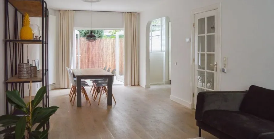 . Beschrijving. English description under the Dutch oneAan de rand van het centrum ligt deze geheel gerenoveerde, karakteristieke jaren-20 hoekwoning met besloten tuin. Het huis wordt volledig gemeubileerd verhuurd inclusief keukengerei en beddengoed. Het gebruiksoppervlak is 100 m².De woning ligt in een rustige kindvriendelijke straat grenzend aan het centrum van Hilversum. Vanuit de woning sta je binnen enke....