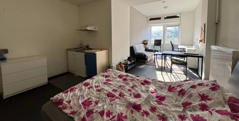 . Beschrijving. Rotsvast Noord-Nederland biedt te huur aan:. Aan de in Leeuwarden, in het populaire studentencomplex 'Allinn', ruime, volledig zelfstandig en gemeubileerde studio (ca. 40m2) gelegen op de begane grond.. Indeling:. Deze studio bevindt zich op de beganegrond, heeft de beschikking over een eigen keuken en badkamer en is volledig gemeubileerd. De gemeenschappelijke ruimtes zijn voor iedereen toegankelijk en worden wekelijks schoongemaakt. Het pand beschikt o.a. over een grote woonkamer met onder meer diverse studeerplekken, loungehoek met grote TV, pooltafel, dartbord, een wasruimte v.v. wasmachines en drogers en een gemeenschappelijke buitenruimte voor o.a. het stallen van je fiets/scooter.. Bijzonderheden:. - Per 1 augustus beschikbaar.. - Het complex beschikt over een grote gemeenschappelijke woonkamer o.a. v.v. TV, pooltafel, dartbord en zithoek.. - Minimale huurperiode: 6 maanden. - Gunstig gelegen t.o.v. centrum, CS, winkels en Hogescholen. Financieel:. - Huurprijs: €625,- p/m (excl.). - Leveringen & diensten: €150,- p/m (o.a. g/w/l, internet, meubilering, stoffering). - Waarborgsom: €775,-. Enkel geschikt voor studerende kandidaten. .. Voor meer informatie kijk op . Bij interesse en/of voor meer informatie kan er vrijblijvend contact worden opgenomen met ons kantoor in Leeuwarden via:. T:. +31(0)58 299 19 91. E:. EMAIL. W:. . Onze voorwaarden zijn van toepassing.