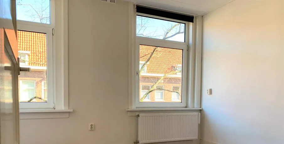 . , Amsterdam (ca. 85 m2) € 2.500,- Excl. G/W/E .. Geschikt voor maximaal 2 delers – Niet geschikt voor studenten. Dubbel bovenhuis met 5 kamers (4 slaapkamers) gelegen op de tweede en derde verdieping met dakterras en balkon op het zuidwesten. Entree op de tweede verdieping geeft toegang tot de hal. Vanuit de hal zijn alle vier de slaapkamers bereikbaar. Twee slaapkamers bevinden zich aan de voorzijde en twee slaapkamers bevinden zich aan de achterzijde. De slaapkamers aan de achterzijde hebben toegang tot het balkon. De badkamer is voorzien van een zwevend toilet, vloerverwarming, vaste wastafel en inloopdouche.. In de hal bevindt zich de vaste trap naar de derde verdieping. De vaste trap komt uit in de heerlijk lichte woonkamer met grote raampartij met openslaande deuren naar het ruime zonnige dakterras gelegen op het Zuid Westen. De open keuken is voorzien van vaatwasser, inductiekookplaat en oven-magnetron.. Het appartement is gelegen in een rustige straat in de populaire wijk De Baarsjes, op loopafstand van het Rembrandt-park. In deze buurt bevinden zich veel trendy restaurants en café’s. De winkels zijn op loopafstand evenals het openbaar vervoer. Ook het centrum is op de fiets in 10 minuten te bereiken..