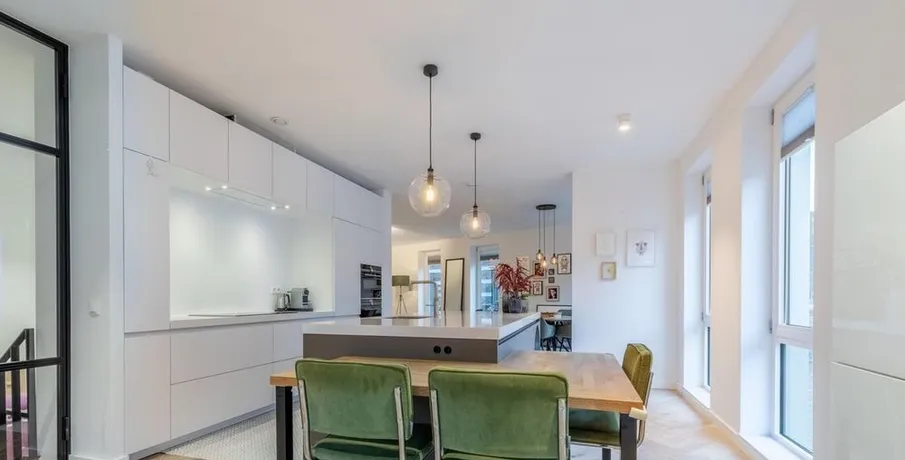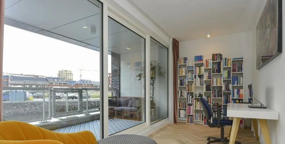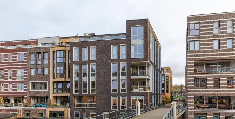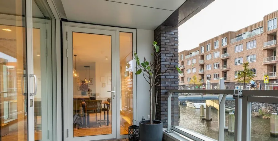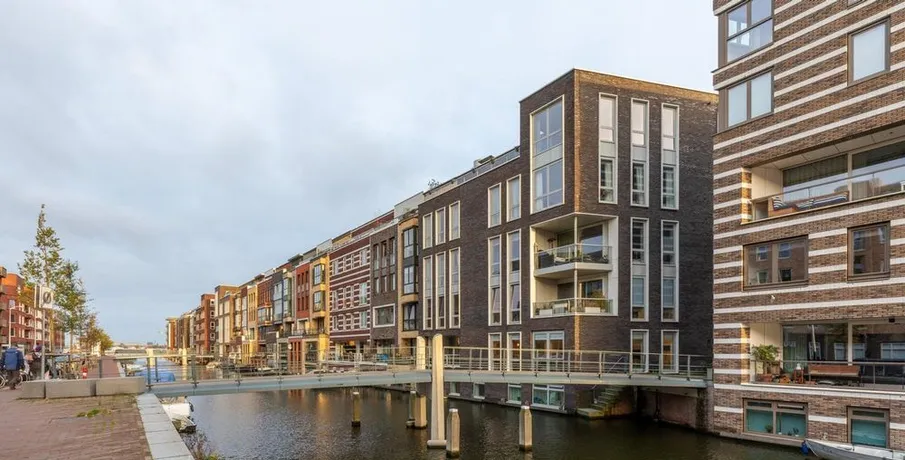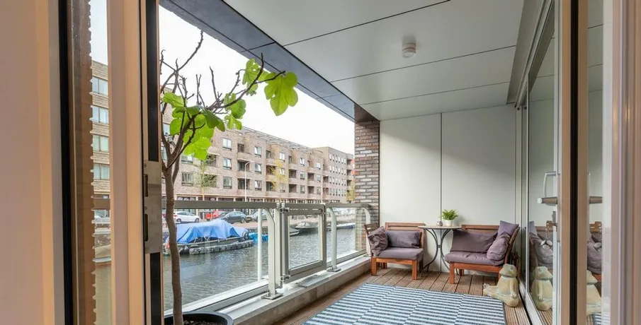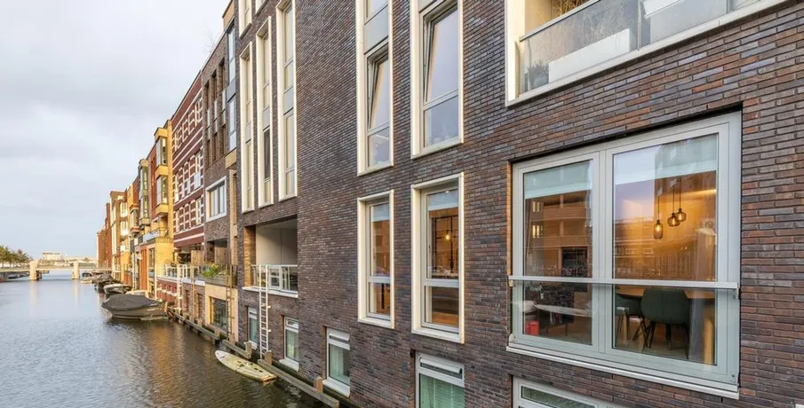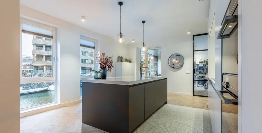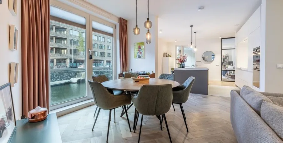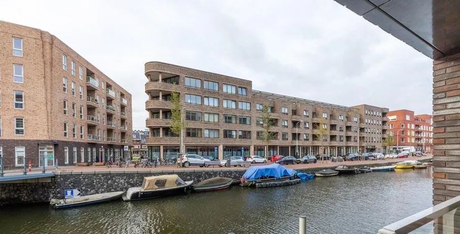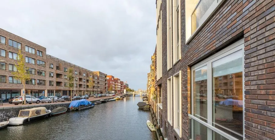 . Beschrijving. At a great location in the Amsterdam Houthavens, THE residential location of the moment in Amsterdam, we offer this beautiful, luxurious and energy efficient 5 room apartment of 133m² (NEN2580 measured).The apartment has a beautiful modern kitchen with island and a spacious living room with a door to the terrace. The terrace is located by the water (a canal) and has a swimming ladder and with t....