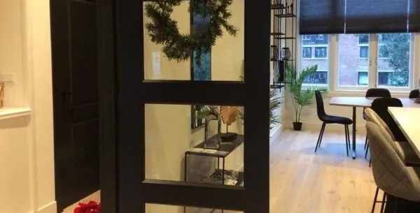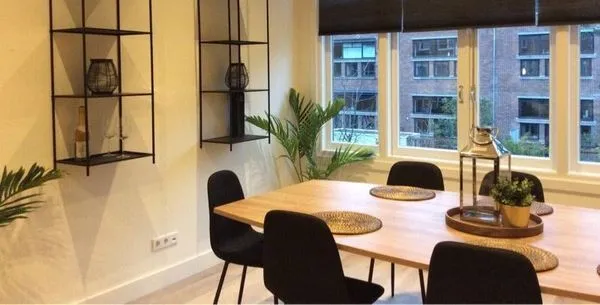. Beschrijving. High-end renovated 5-bedroom apartment with modern and luxurious amenities, a roof top terrace and 2 balconies! This bright apartment features beautiful wooden flooring, floor heating, an open black design kitchen, two bedrooms, a luxurious bathroom, brand new furnishing and nice balcony! Ideally located within walking distance of the shopping street Theresiastraat and the Haagse Bos (forest of....