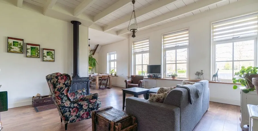 . Beschrijving. Te huur aangeboden via HOUSE2DAY MAKELAARS. Deze woonboerderij word gemeubileerd aangeboden voor verhuur voor de duur van 6 tot 8 maanden vanaf 1 September 2023.. Op een schitterend locatie gelegen tegen het landgoed “De Colckhof” staat de voorste helft van deze woonboerderij. De woning is volledig verbouwd en heeft een prachtig uitzicht over de landerijen.. Ben je op zoek naar tijdelijke woonruimte? En wil je genieten van alles wat het wonen op een woonboerderij en het buitengebied te bieden heeft? Dan nodigen we je van harte uit om te komen kijken.. De woonboerderij is te bereiken middels een gedeelde oprijlaan. Aan de zijkant bevindt zich voldoende parkeergelegenheid voor meerdere auto’s.. De helft die de huur wordt aangeboden is gelegen aan de voorzijde.. Indeling:. Royale entree met toegang tot toilet, wasruimte, opgang naar de eerste verdieping, slaapkamer met badkamer en de woonkamer/keuken.. Deze woning beschikt over totaal 4 slaapkamers en 2 badkamers waarvan 1 slaapkamer met badkamer zich op de begane grond bevindt.. De woonkamer is bijzonder sfeervol en biedt uitzicht op de landerijen. Tevens bevindt zich hier de landelijke woonkeuken met voldoende ruimte voor een gezin. De gehele begane grond is voorzien van vloerverwarming.. Op de eerste verdieping bevinden zich 3 royale slaapkamers met veel bergruimte en de badkamer welke is voorzien van ligbad, wastafelmeubel, toilet en inloopdouche.. De tuin bevindt zich aan de voorzijde en zijkant van de woning. Deze is geheel privé en biedt voldoende ruimte.. De omgeving leent zich perfect voor wandelen of fietsen, landgoed De Colckhof en landgoed Den Alerdink bevinden zich beide op loopafstand.. - Woning wordt gemeubileerd verhuurd. - Goede isolatie en vloerverwarming. - Huurprijs € 1450,- excl gwl. - Mogelijkheid tot het bij huren van extra bergruimte..