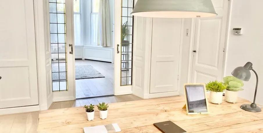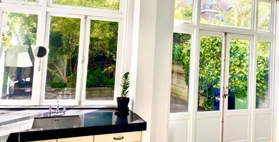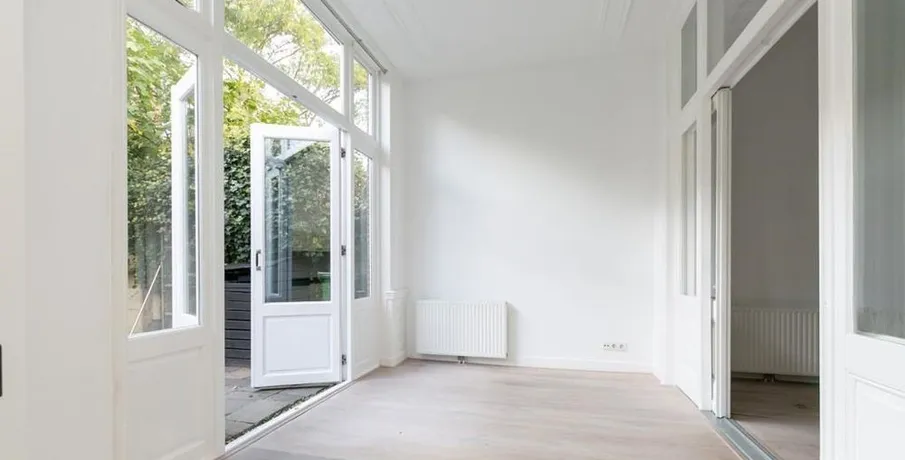 . Beschrijving. Dit drielaagse appartement is volledig gerenoveerd met oog voor originele details zoals ornamenten plafonds, massieve eikenhouten vloeren, paneeldeuren en glas in lood ramen en deuren. Een heerlijke tuin op het zuidwesten met buitenkeuken. Met bijna 145m2 woonoppervlak, 2 badkamers, een tuin en 4 slaapkamers zou dit de perfecte gezinswoning kunnen zijn vlakbij het centrum en strand.. De woning is gelegen aan een prachtige groene gracht met uitzicht op woonboten en bomen op korte afstand van de winkelstraat Frederik Hendriklaan, het centrum, het strand en een aantal internationale scholen. Een korte wandeling naar de Reinkenstraat, een typisch Nederlandse winkelstraat, met trendy bars, restaurants, speciaalzaken etc. en gunstig openbaar vervoer naar zowel het Centraal Station (tram 3) als Holland Spoor (tram 11) zijn een extra bonus. De woning is goed onderhouden. Het combineert de geest van het oude en het comfort van het nieuwe en is een weerspiegeling van een huis waar al meer dan 115 jaar wordt gewoond. Het heeft grote ruime kamers, hoge plafonds en oude decoraties. Een werkelijk unieke woonervaring, en laten we de zonnige tuin niet vergeten.. Indeling:. Begane grond: Entree, voordeur, gang met marmeren vloer. Modern toilet met fontein, garderobekast, studeerkamer, woonkamer en-suite met massief eikenhouten vloer, originele ornamenten plafonds, marmeren schouw, schuifseparatie met glas in lood en vier vaste kasten, achterkamer met houten vloer, marmeren schouw en schuifpui naar de serre met Openslaande deuren naar de ruime achtertuin op het zuidwesten met buitenkeuken. Half open volledig ingerichte keuken met onder andere een vaatwasser, 5-pits gasfornuis en Amerikaanse koelkast.. Trap naar de eerste verdieping, slaapkamer begane grond, berging, slaapkamer met en-suite badkamer met dubbele wastafel en ligbad met douche. Mooie openslaande deuren naar het balkon.. Trap naar de tweede verdieping, overloop met modern toilet en fontein & toegang tot de derde slaapkamer.. Trap naar zolder, overloop met tweede badkamer voorzien van douche en wastafel. Kast met wasmachine aansluiting en extra aansluiting voor een droger en een vierde, wat kleinere slaapkamer voor kinderen of gasten.. Centraal verwarmd, uitstekend geisoleerd en volledig voorzien van dubbel glas.. Plaats. Het appartement is centraal gelegen op loopafstand van vele leuke winkels, restaurants en cafe's alsmede openbaar vervoer. Op korte afstand van Scheveningen en het strand. Gelegen nabij de winkelstraten Reinkenstraat, Frederik Hendriklaan en Fahrenheit alsmede het stadscentrum. Statenkwartier en zijn internationale instellingen zoals Europol, OPCW en ICC bevinden zich op slechts enkele minuten afstand. Perfect voor gezinnen of jonge professionals die willen genieten van alles wat Den Haag te bieden heeft.. Sleutelaspecten. - Centrale plek. - Hoofdzakelijk gelegen op de begane grond. - Royale tuin op het zuidwesten. - Gerenoveerd. - Originele details en afwerkingen. - Hoogwaardig en artistiek. - Afwasmachine. - Parketvloer. - Heldere en lichte woning. - 4 slaapkamer. Huurprijs: €3195,- exclusief GWE - Ongemeubileerd.