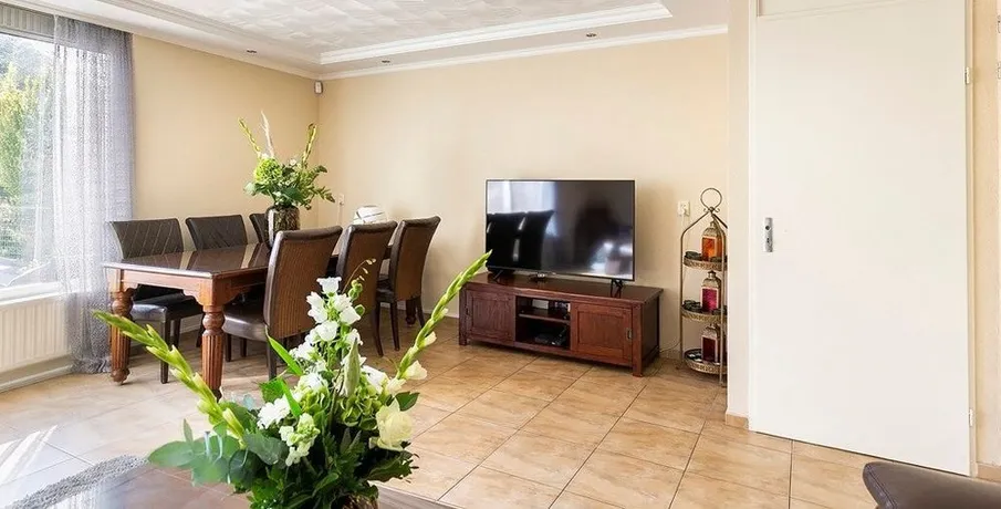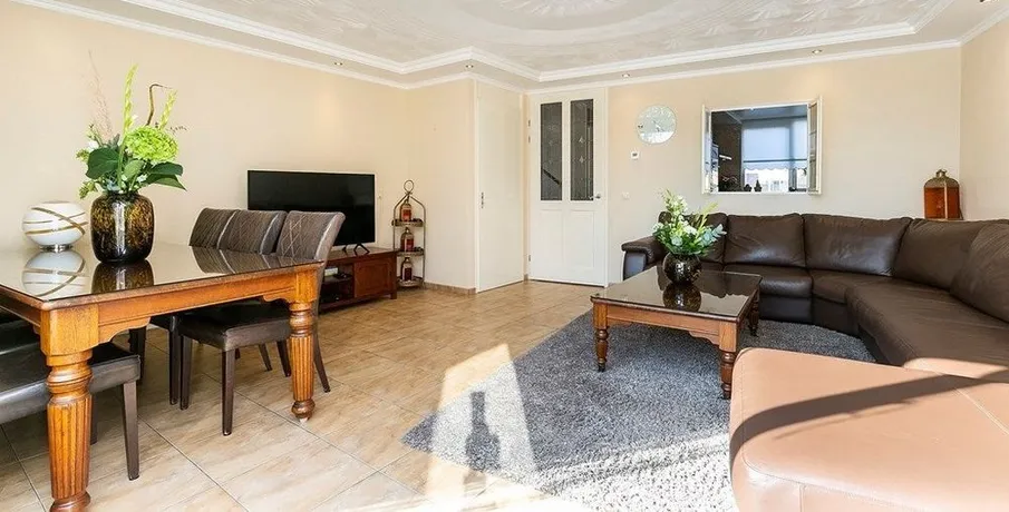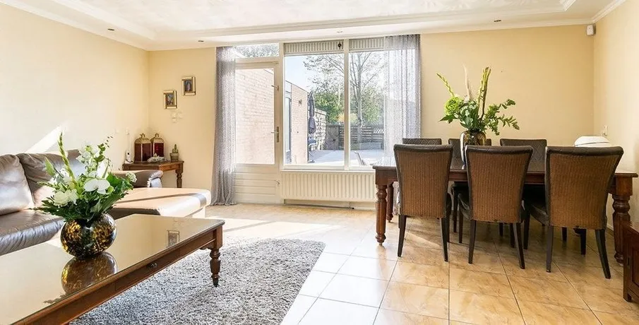 . Beschrijving. Beautiful fully furnished and turn-key family home with 4 bedrooms and a garden at the Trezoriersdreef. A private parking can be found in front of this house of approx. 125m2. A modern kitchen, 2 toilets and 2 bathrooms make this an excellent home for a family. The garden is almost 100m2 and has a shed for storage of bikes etc. This spacious home was built in 1995 and is located in a quiet neig....