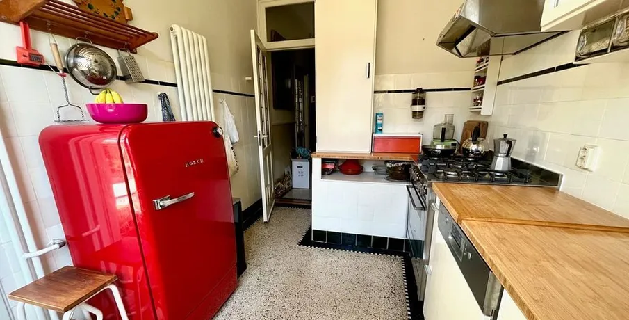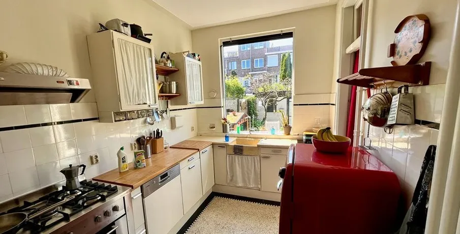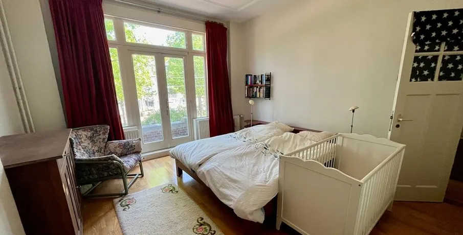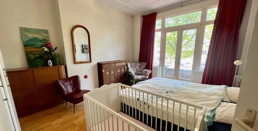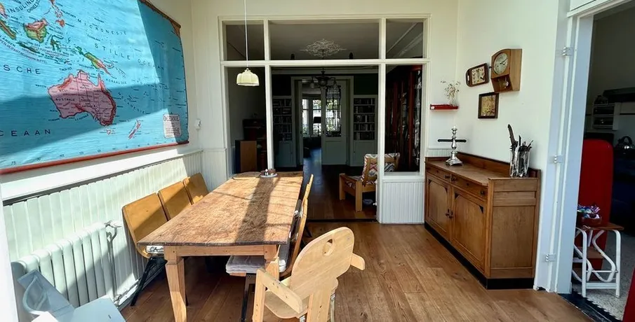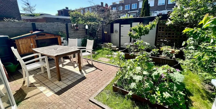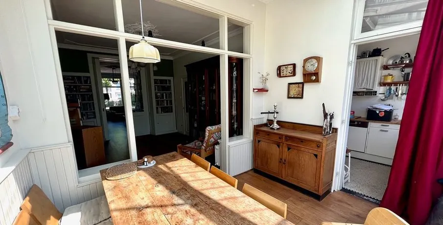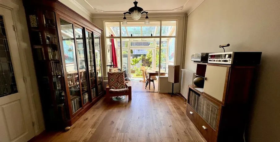 . Beschrijving. Turn-key and fully furnished family home with a garden and 4 bedrooms at the Lippe-Biesterfeldweg. This cozy family home is approx. 170m2 and has 2 toilets, a lovely garden and shed. 2 of the bedrooms have access to terraces on the backside of the home. Playful and characteristic interior and carefully selected furniture. This home is an excellent choice for families arriving in the summer who need to find a base in The Hague and wish to live not too far from the International School of The Hague. A safe and friendly neighbourhood near to shops, supermarkets and restaurants, as well as the beach. The tram stops right in front of the house and it's easy parking in front of the house.. Layout. Entrance from the street to vestibule with characteristic doors to the hallway. The spacious living room can be separated in 3 spaces, a seating area, dining room and extension to the house with French doors to the green garden. The garden has a back entrance as well to reach the shed by bike.. Fully equipped kitchen with a dishwasher, fridge / freezer, oven / stove and lots of storage space.. In the hallway there are doors to a storage, toilet with faucet and the basement.. Stairs to the first floor with doors to all 4 bedrooms. All bedrooms are good in size. The front bedroom has a double bed and the backside bedrooms are decorated as children rooms with doors to the terraces. A work / study room on the front side which can be used as a sleeping room as well. There is a separate toilet on this floor and modern bathroom with sink, towel radiator, washing machine and shower.. Centrally heated apartment and well functioning and cosy Norwegian wood stove.. Location. Tram lines 2 and 3 as well as bus line 21 and 23 can be found right outside of the house. Excellent shops, fitness and sauna facilities and supermarket within walking distance. Nearby International School of The Hague and the dunes and beach of Kijkduin.. Key aspects. - Fully furnished. - 4 bedrooms. - Garden with shed. - Sun terrace. - Well equipped kitchen. - Tramline in front of the house. - Easy parking. - Close to supermarkets and shops. - Near International School of The Hague. Rental price: €2995,- excluding utilities - Furnished.