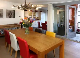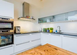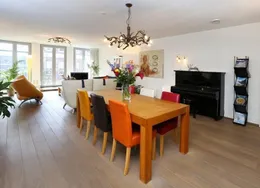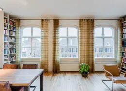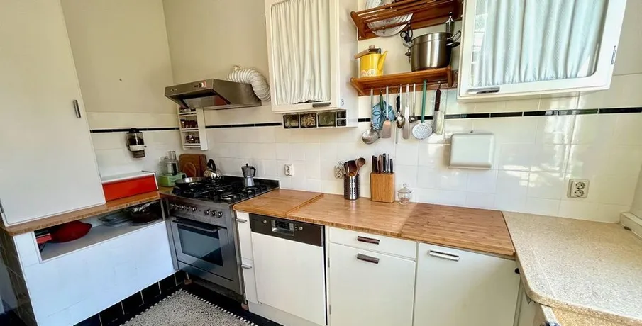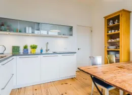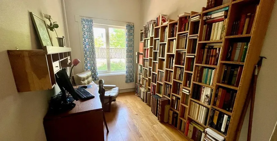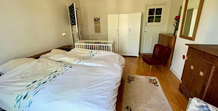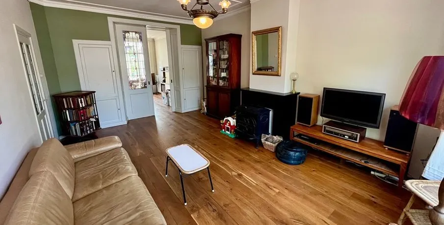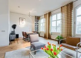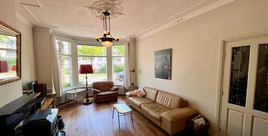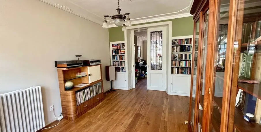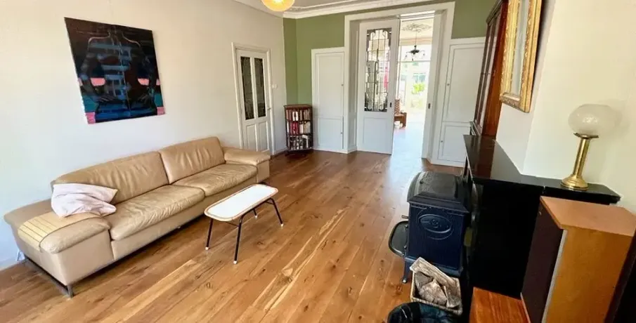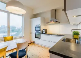 . Beschrijving. Turn-key and fully furnished family home with a garden and 4 bedrooms at the Lippe-Biesterfeldweg. This cozy family home is approx. 170m2 and has 2 toilets, a lovely garden and shed. 2 of the bedrooms have access to terraces on the backside of the home. Playful and characteristic interior and carefully selected furniture. This home is an excellent choice for families arriving in the summer who need to find a base in The Hague and wish to live not too far from the International School of The Hague. A safe and friendly neighbourhood near to shops, supermarkets and restaurants, as well as the beach. The tram stops right in front of the house and it's easy parking in front of the house.. Layout. Entrance from the street to vestibule with characteristic doors to the hallway. The spacious living room can be separated in 3 spaces, a seating area, dining room and extension to the house with French doors to the green garden. The garden has a back entrance as well to reach the shed by bike.. Fully equipped kitchen with a dishwasher, fridge / freezer, oven / stove and lots of storage space.. In the hallway there are doors to a storage, toilet with faucet and the basement.. Stairs to the first floor with doors to all 4 bedrooms. All bedrooms are good in size. The front bedroom has a double bed and the backside bedrooms are decorated as children rooms with doors to the terraces. A work / study room on the front side which can be used as a sleeping room as well. There is a separate toilet on this floor and modern bathroom with sink, towel radiator, washing machine and shower.. Centrally heated apartment and well functioning and cosy Norwegian wood stove.. Location. Tram lines 2 and 3 as well as bus line 21 and 23 can be found right outside of the house. Excellent shops, fitness and sauna facilities and supermarket within walking distance. Nearby International School of The Hague and the dunes and beach of Kijkduin.. Key aspects. - Fully furnished. - 4 bedrooms. - Garden with shed. - Sun terrace. - Well equipped kitchen. - Tramline in front of the house. - Easy parking. - Close to supermarkets and shops. - Near International School of The Hague. Rental price: €2995,- excluding utilities - Furnished.
