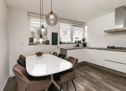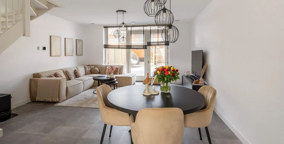 . Beschrijving. Gemeubileerde eengezinswoning met diepe achtertuin in Sliedrecht. Modern en duurzaam wonen (energielabel A++++) in een rustige, groene omgeving en dat op slechts 30 minuten van Rotterdam! Deze instapklare vier-kamer woning van 3 woonlagen met tuin, open keuken, drie slaapkamers en een grote zolder biedt comfort, ruimte en een gunstige ligging. Ideaal voor expats en gezinnen die waarde hechten aan kwaliteit en bereikbaarheid.. De ‘Staatsliedenbuurt’ is een moderne woonwijk en staat bekend om zijn uitstekende voorzieningen. Hier vind je een prettige mix van jonge gezinnen, stellen en internationale bewoners. De buurt is rijk aan groenvoorzieningen verspreid door de wijk liggen speelveldjes, wandelpaden en kleine parkjes. Op loopafstand vind je het grotere Westerpark, perfect voor een hardloopronde of een gezellige picknick! Het prachtige Nationaal Park De Biesbosch ligt op fietsafstand, werkelijk een oase van rust waar je kunt wandelen, fietsen en varen.. BEGANE GROND. Entree, hal met garderobe, meterkast met meerdere groepen, separate toiletruimte met wandcloset.. Toegang naar de royale woonkamer in een lichte kleurstelling met PVC vloer in tegellook, deze is voorzien van een hoekbankstel, salontafel, eettafel met stoelen, televisie met bijpassend meubel, verlichting en raambekleding. De openslaande deuren geven toegang naar de diepe achtertuin met berging en achterom. De loungeset onder de overkapping is een heerlijke plek om te ontspannen, start je dag met een kop koffie in de ochtendzon of sluit de dag af met een drankje onder de sterren.. De open indeling van de woonkamer sluit aan op de luxe afgewerkte keuken, strak zwart, greeploos en voorzien van een licht keukenblad, alle inbouwapparatuur wat je nodig hebt is aanwezig zoals, een Bora inductie kookplaat met geïntegreerde afzuiging, oven, koel-vries combinatie en de vaatwasser completeert het geheel. Een perfecte mix van stijl en functionaliteit!. Over de open houten trap bereik je de slaapverdieping.. EERSTE VERDIEPING. De hoofdslaapkamer is perfect om tot rust te komen met boxspring, nachtkastjes, kledingkast, verlichting en gordijnen. De tweede slaapkamer is voorzien van een nieuw bed met achterwand, verlichting, vitrage en overgordijnen. De derde kleinere slaapkamer kan je ook uitstekend gebruiken als thuiskantoor.. Aansluitend loop je door naar de geheel betegelde luxe badkamer uitgevoerd in zwart-wit met stortdouche, wastafelmeubel met bijpassende kast en verlichte spiegel, tweede toilet en een designradiator.. Houten trapopgang naar tweede verdieping.. TWEEDE VERDIEPING. Deze verrassend ruime zolderverdieping is een volwaardige aanvulling op de woning!. De ruimte is stijlvol in het wit afgewerkt, wat zorgt voor een frisse en lichte uitstraling en de grijze PVC vloer geeft de ruimte een moderne en strakke look, dankzij de royale dakkapel (voorzien van rolgordijnen) en het extra Velux dakraam profiteert de verdieping van veel daglicht, er is daarnaast slim gebruikgemaakt van de ruimte, met extra bergruimte onder de schuine kanten.. Aan de achterzijde bevindt zich een aparte technische ruimte met onder andere de warmtepompinstallatie, aansluiting voor de wasmachine en plek voor de droger, praktisch en netjes weggewerkt. Momenteel is de zolder in gebruik als kantoor, maar deze multifunctionele ruimte biedt talloze mogelijkheden: denk aan een hobbyruimte, extra slaapkamer of luxe thuiswerkplek.. Wil je instapklaar en centraal wonen in een rustige wijk met alle voorzieningen in de buurt?. Dan is deze woning aan de Binnenhof precies wat je zoekt, woningen van deze kwaliteit zijn zelden beschikbaar!. BIJZONDERHEDEN. - gemeubileerd;. - energiezuinig;. - zonnepanelen;. - vloerverwarming;. - vloerkoeling;. - bouwjaar 2021;. - woonoppervlakte ca. 110 m²;. - perceeloppervlakte 125 m²;. - minimale huurtermijn is één jaar;. - waarborgsom is 2 maanden huur;. - huurprijs is exclusief nutsvoorzieningen;. - maximaal twee personen of een gezin;. - gratis parkeren voor de deur;. - beschikbaar vanaf 1e week september 2025.. HUURPRIJS. € 2250,- per maand.. Op onze website vind je de:. Huurvoorwaarden. Protocol toewijzing huurwoning. Protocol for the allocation of rental properties. Deze informatie is door ons met de nodige zorgvuldigheid samengesteld. Onzerzijds wordt geen enkele aansprakelijkheid aanvaard voor enige onvolledigheid, onjuistheid of anderszins, dan wel de gevolgen daarvan. Alle opgegeven maten en oppervlakten zijn indicatief..