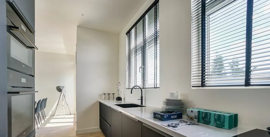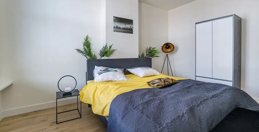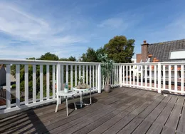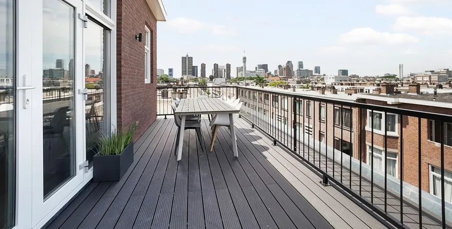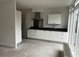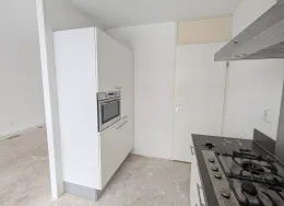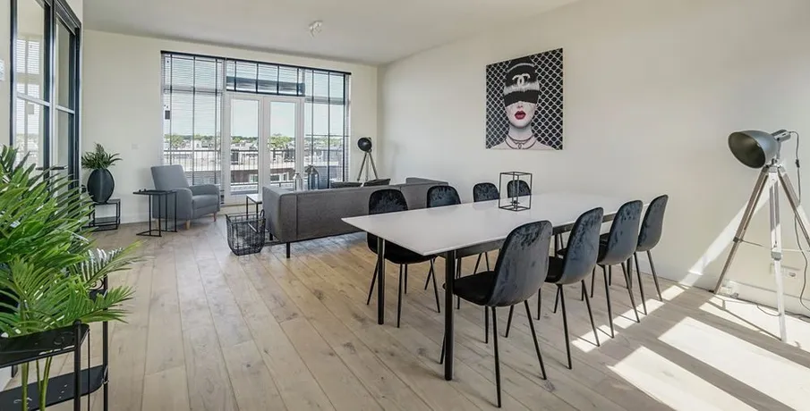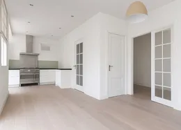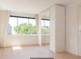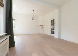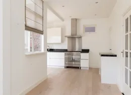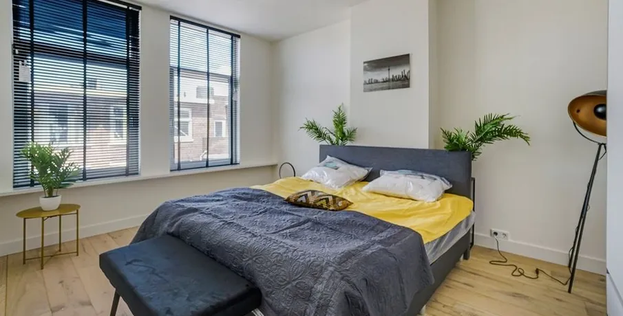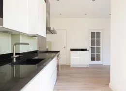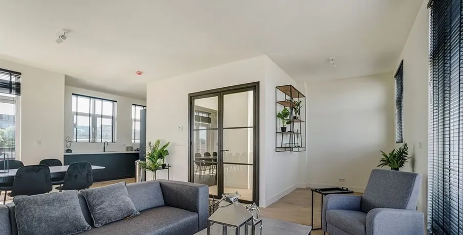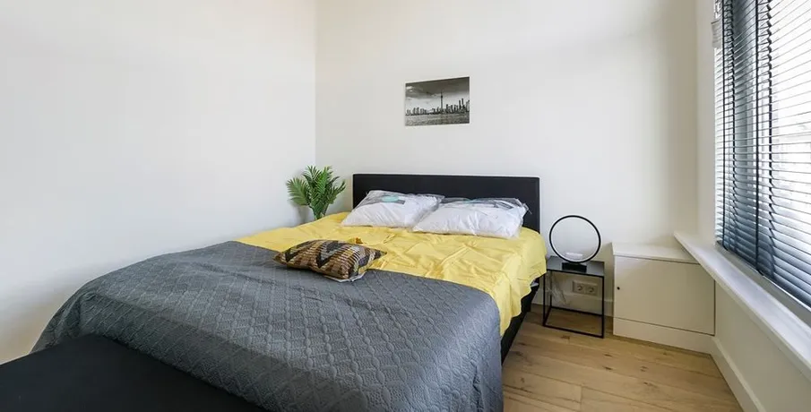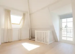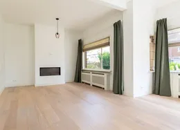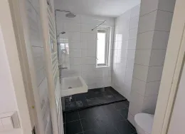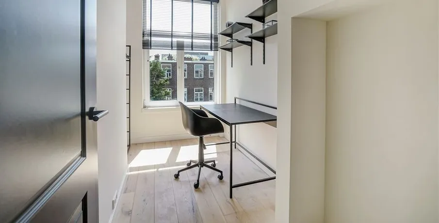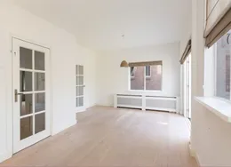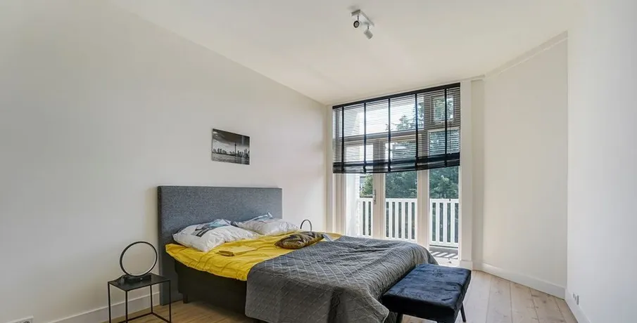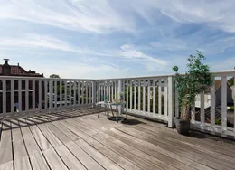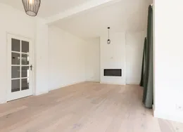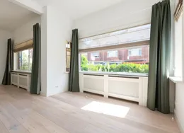 . Beschrijving. High-end renovated 5-bedroom apartment with modern and luxurious amenities, a roof top terrace and 2 balconies! This bright apartment features beautiful wooden flooring, floor heating, an open black design kitchen, two bedrooms, a luxurious bathroom, brand new furnishing and nice balcony! Ideally located within walking distance of the shopping street Theresiastraat and the Haagse Bos (forest of The Hague).. Layout. Entrance with stairs to the second floor. 5 bright bedrooms and nice, sunny balcony. Luxurious bathroom with walk-in shower, sink with storage space, mirror, towel radiator and toilet. Stairs to upper floor. Spacious and bright living room with open kitchen with built-in appliances. Front balcony. Separate toilet with fountain. Fantastic roof top terrace for the summer. The apartment has been fully renovated with attention to design and comfortability, fitted with wooden flooring throughout, steel industrial doors, double glazed windows and brand new furniture.. Location. Located on a quiet street, close to shops, schools and public transportation. Closely located to the shopping streets Theresiastraat and Hoytemastraat, the British School of The Hague and the Haagse Bos, as well as several other large parks. The Bezuidenhout neighbourhood has the benefit of the close proximity the the main streets and highways, making Rotterdam and Amsterdam in close reach.. Key aspects. - Newly renovated. - Newly furnished. - Fitted with all comforts. - Wooden style flooring. - Modern bathroom. - Stylish kitchen. - Terrace. - Floor heating. - Ca. 140m2 of living space. - 5 bedrooms. - Dishwasher. - Washing machine. - Sharers are not allowed unless they are two individuals. Rental price: €2995,- excluding utilities.