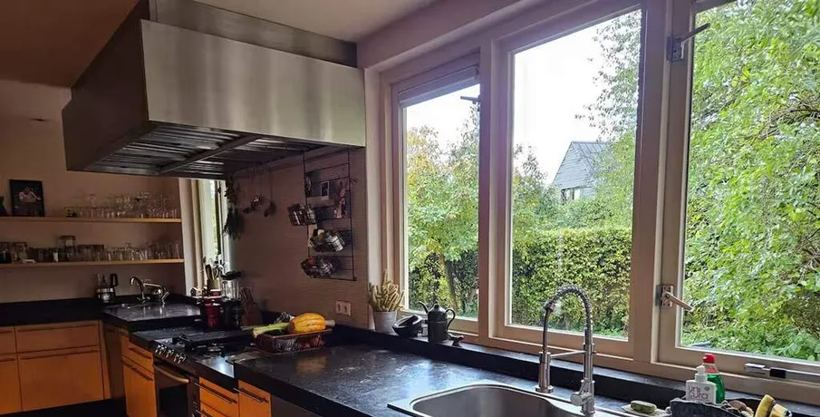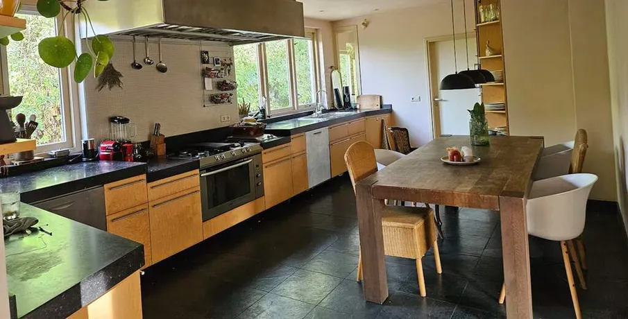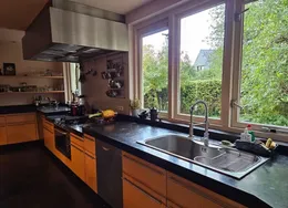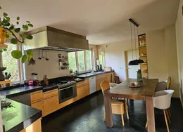 . Per 1 september 2025 komt deze bijzondere villa tijdelijk beschikbaar. Gelegen in het geliefde Het Zand in Leidsche Rijn, biedt de woning een oase van rust midden in het groen. De villa is omgeven door een riante tuin van circa 5000 m²met een grote vijver, terras en volop privacy. Dankzij de royale opzet en de natuurlijke omgeving voelt het alsof je ver buiten de stad woont, terwijl alle stedelijke voorzieningen binnen handbereik zijn.. Op slechts 7 minuten loopafstand bevindt zich station Utrecht Terwijde, waarmee je binnen 7 minuten op Utrecht Centraal staat. Winkelcentrum Leidsche Rijn Centrum en het Maximapark liggen om de hoek en met de auto zit je zó op de A2 of A12. Een ideale ligging voor wie rust én bereikbaarheid zoekt.. De woning is gebouwd in 1972 en ademt karakter door de aanwezigheid van houten balken, een open trap en terracotta plavuizen. De villa is volledig gestoffeerd, beschikt over een grote woonkamer met schuifpui naar het terras, een ruime leefkeuken, meerdere slaapkamers, werk-/studeerkamers en diverse sanitaire voorzieningen.. Let op: een afgesloten deel van de woning wordt apart verhuurd als B&B of appartement. Dit betekent dat het toegangspad en een klein deel van het erf gedeeld worden met gasten.. Vanwege regelgeving is het inschrijven van maximaal 3 personen toegestaan op het adres. Dit maakt de woning uitermate geschikt voor een stel, gezin of klein huishouden, maar niet voor grotere groepen woningdelers.. Kenmerken:. Beschikbaar per: 1 september 2025. Huurperiode: maximaal 1 jaar. Woonoppervlakte: ca. 320 m². Perceelgrootte: ca. 5600 m². Huurprijs: € 4.500,- per maand (exclusief gas/water/licht). Gemeubileerd. 5 ruime slaapkamers, 1 babykamer, 2 werkkamers. Badkamer met ligbad en toilet, aparte douche, 4 toiletten totaal. Ruime keuken met 5-pits gasfornuis, oven, stoomoven, Amerikaanse koelkast. Grote woonkamer met houtkachel, schuifpui, tv en piano. Wasruimte met wasmachine/droger. Kelder en zolder met cv-opstelling en bergruimte. Vijver met steiger, groot terras, fietsenhok en schuur. Gelegen in Leidsche Rijn, nabij winkels, OV en uitvalswegen. Maximaal 3 personen kunnen zich inschrijven op dit adres. Voor vragen of het plannen van een bezichtiging kun je contact opnemen via: EMAIL. Deze informatie is door ons met de nodige zorgvuldigheid samengesteld. Onzerzijds wordt echter geen enkele aansprakelijkheid aanvaard voor enige onvolledigheid, onjuistheid of anderszins, dan wel de gevolgen daarvan. Alle opgegeven maten en oppervlakten zijn indicatief. Koper heeft zijn eigen onderzoek plicht naar alle zaken die voor hem of haar van belang zijn. Met betrekking tot deze woning is de makelaar adviseur van verkoper. Indien u geen deskundige vertegenwoordiger inschakelt, acht u zich volgens de wet deskundige genoeg om alle zaken die van belang zijn te kunnen overzien..